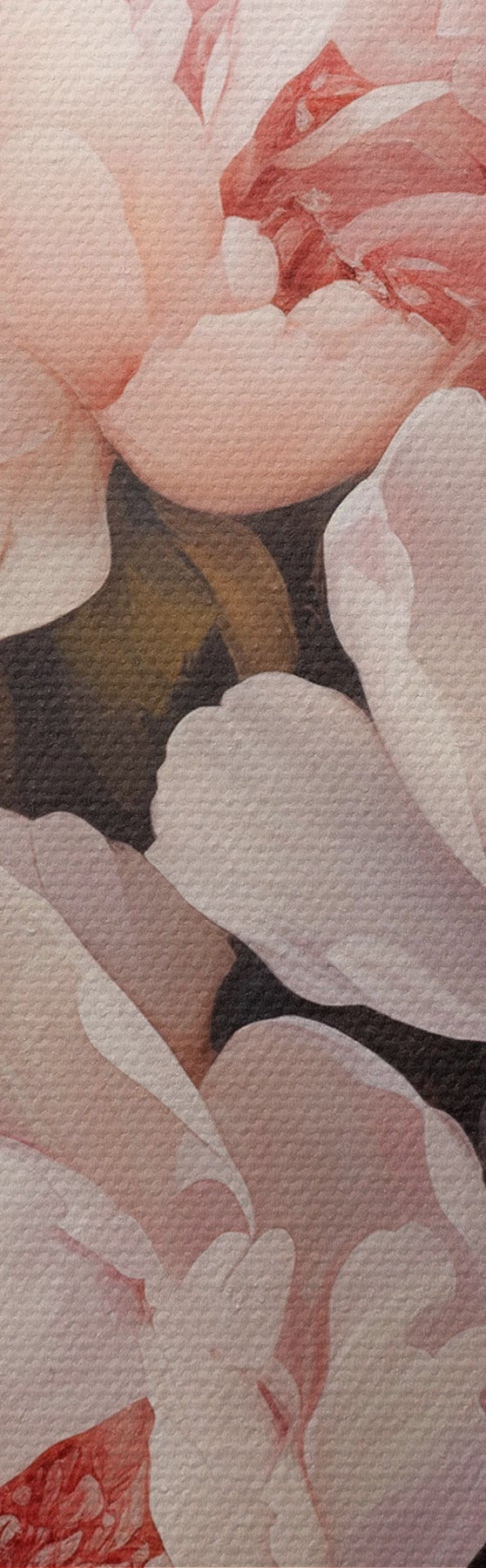 Drei Materialtypen stehen zur Verfügung: Economic Canvas - ein dichtes und haltbares Material für den Digitaldruck, identisch mit Malerleinwand, wasserfeste Oberfläche, realistische Wiedergabe von Details, mittelkörniges Material. Premium Canvas - die Textur ähnelt der einer Malerleinwand (verwobene kleine Fäden). Weiche, detaillierte Wiedergabe des Bildes auf einer matten Oberfläche. Eco-Premium - hochwertiges Gewebe aus 100% Baumwolle. Dank der natürlichen Baumwollfasern ist das Material langlebig und verschleißfest. Hervorragende Farbwiedergabe und Detailtreue.