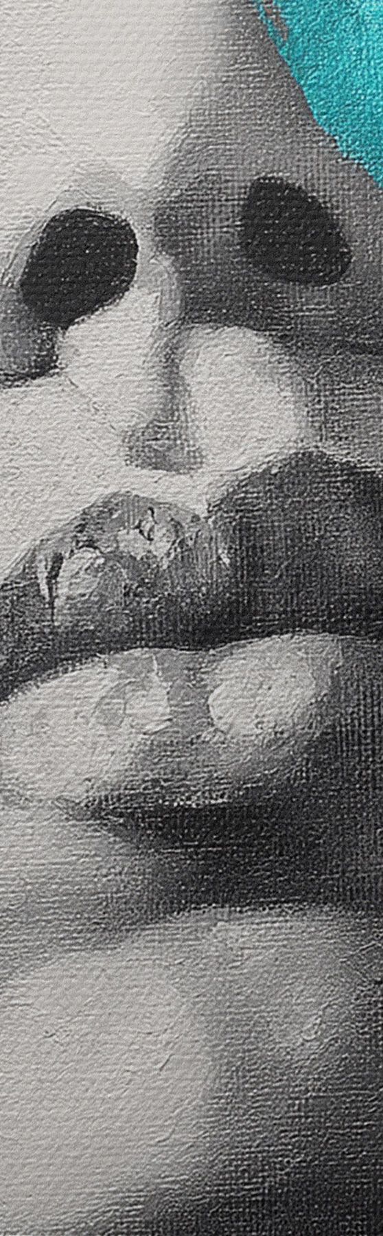 Wandbilder Mixed Media Portrait mit Fragmenten von Farbstrichen und Texturen s45416