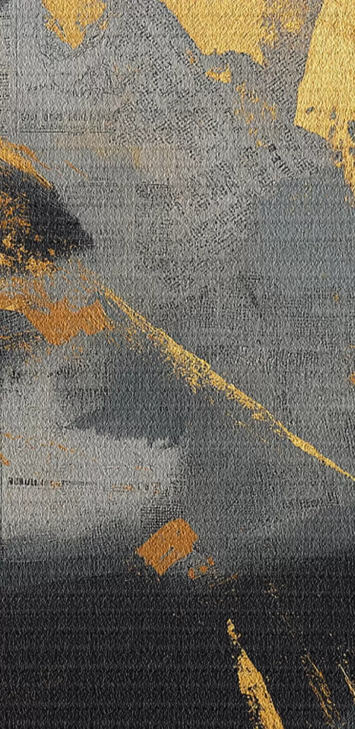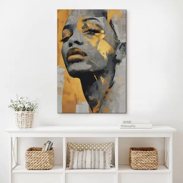 Wandbilder Gemischtes Medienporträt mit Zeitungsfragmenten und dekorativen Pinselstrichen Art. s45419
