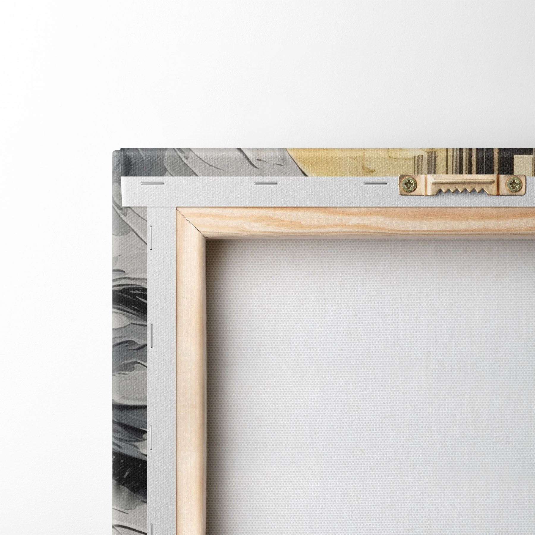 Um die Leinwand auf Keilrahmen zu spannen, ohne das Bild zu beschädigen, verwenden wir ein gespiegeltes Bild.