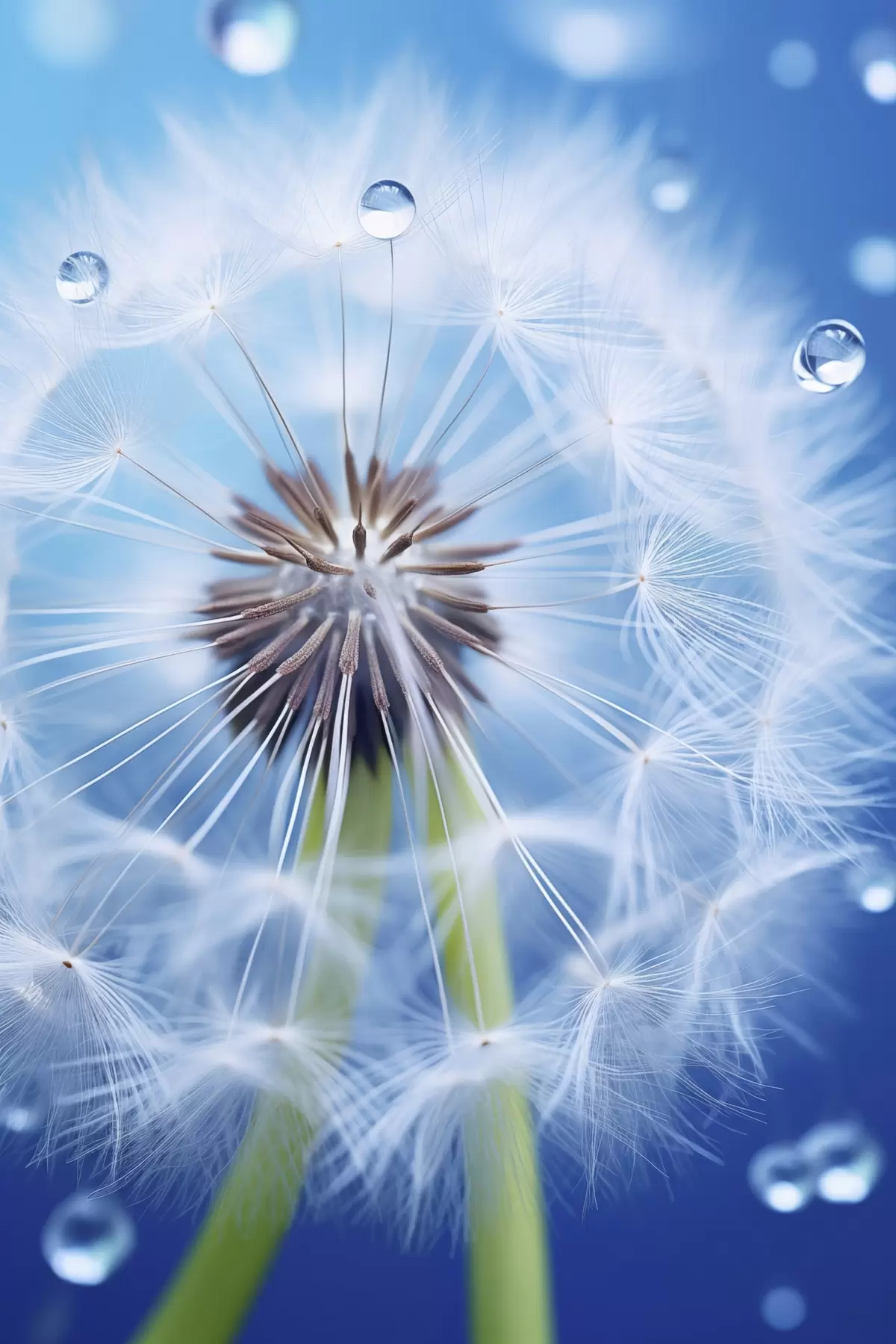Wandbilder Makroaufnahme einer Pusteblume auf blauem Hintergrund s45517