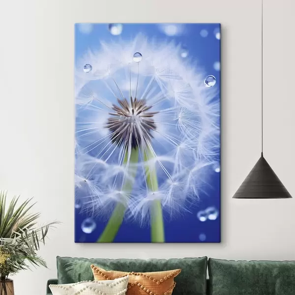 Wandbilder Makroaufnahme einer Pusteblume auf blauem Hintergrund Art. s45517