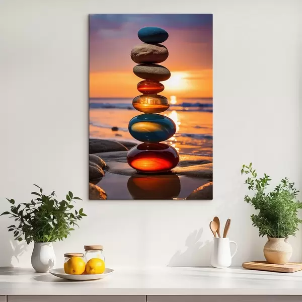 Wandbilder Gestapelte Steine vor der Kulisse des Sonnenuntergangs Art. s45520