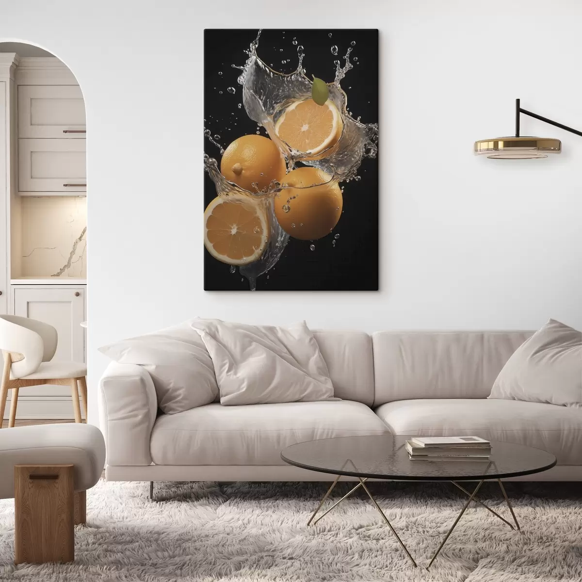 Wandbilder Saftige Orangen in Wasserspritzern Art. s45526