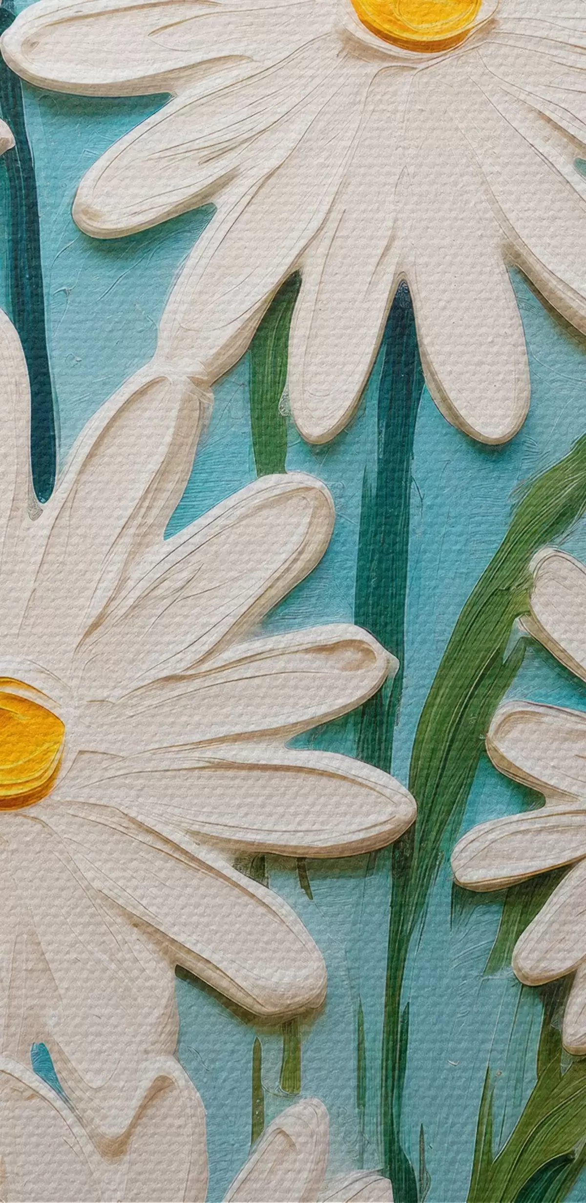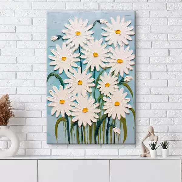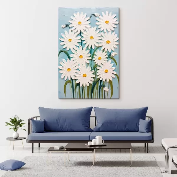 Wandbilder Gänseblümchen im Stil der Reliefmalerei: Komposition auf blauem Hintergrund Art. s45527