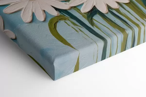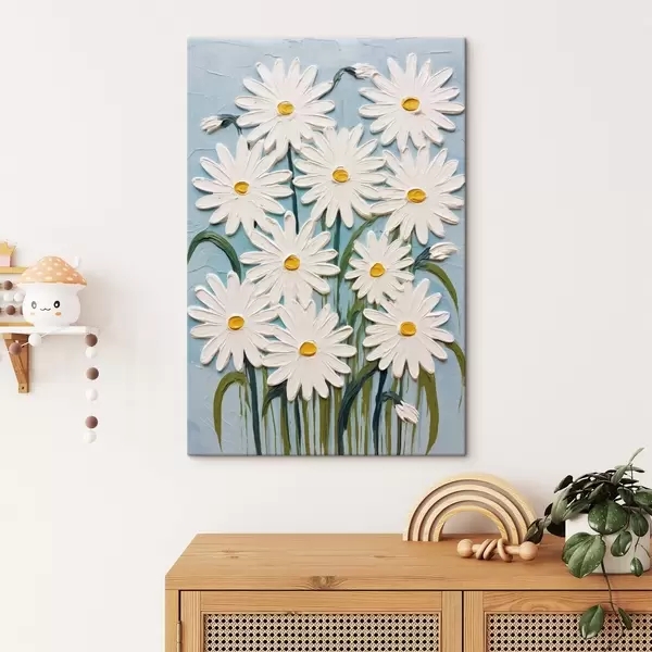 Wandbilder Gänseblümchen im Stil der Reliefmalerei: Komposition auf blauem Hintergrund Art. s45527
