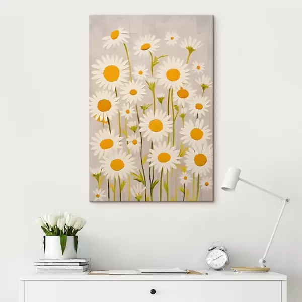 Wandbilder Wildblumen: Komposition von Gänseblümchen auf einem hellen Hintergrund s45528