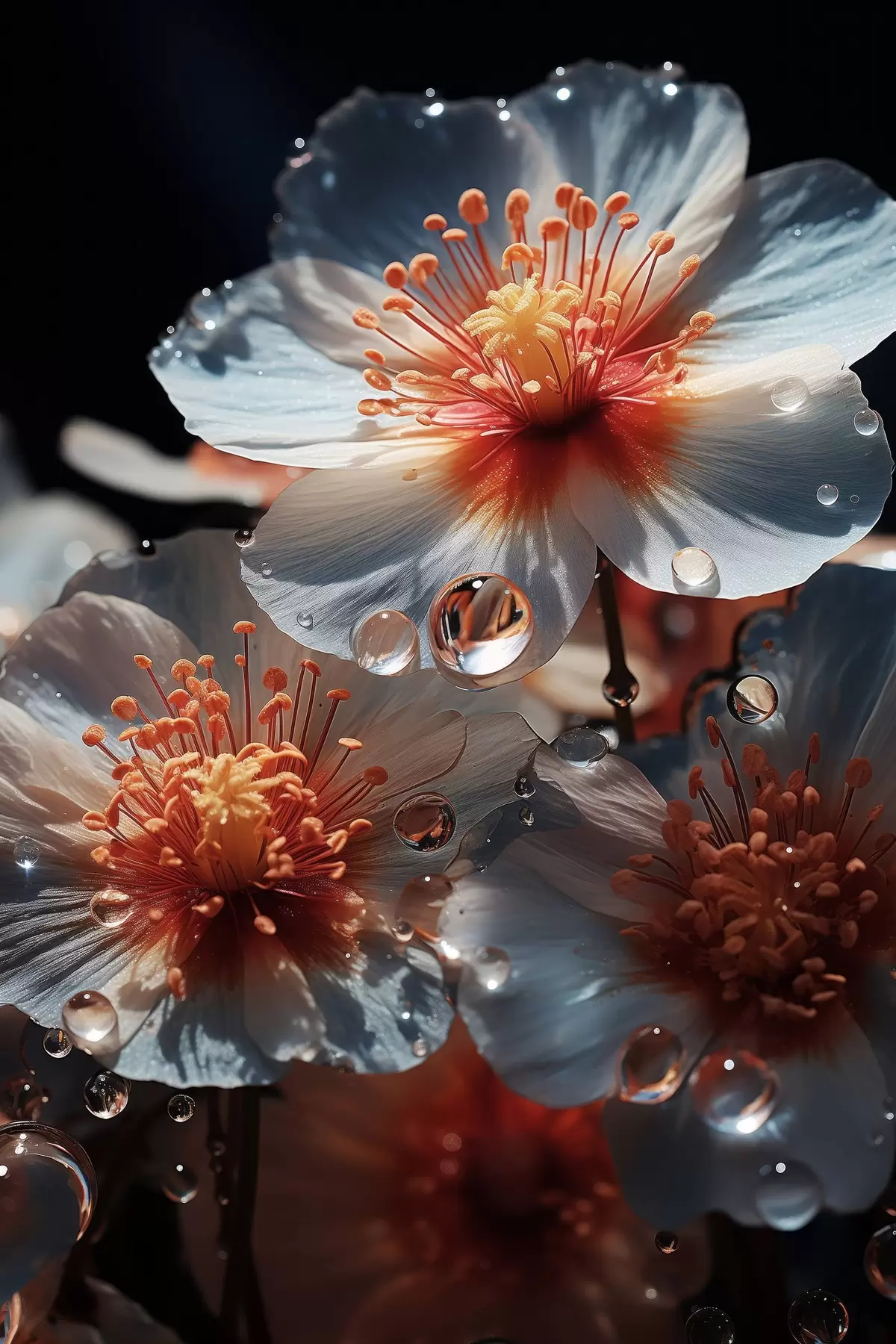 Wandbilder Blumenmotiv: Schönheit der Blütenblätter mit Tau auf dunklem Hintergrund s45529