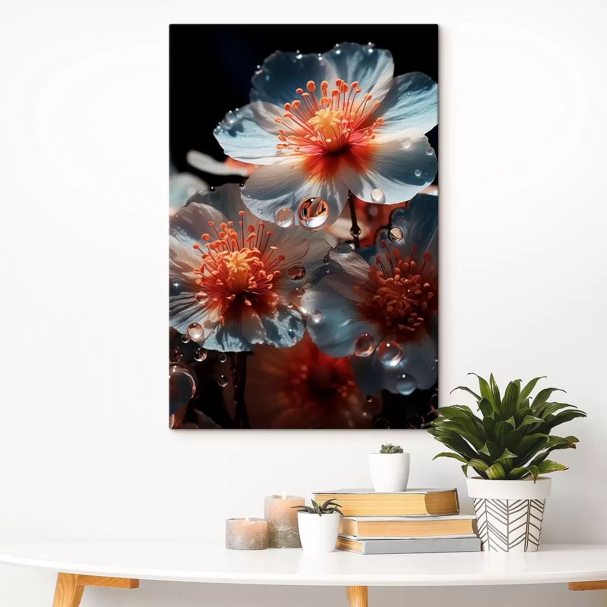 Wandbilder Blumenmotiv: Schönheit der Blütenblätter mit Tau auf dunklem Hintergrund Art. s45529
