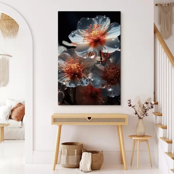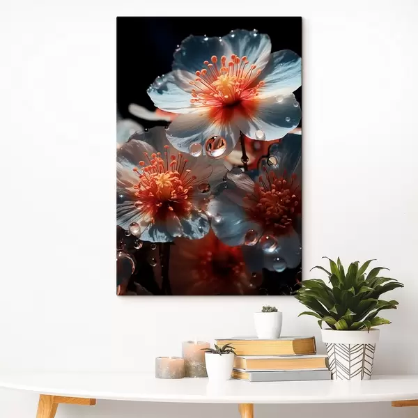 Wandbilder Blumenmotiv: Schönheit der Blütenblätter mit Tau auf dunklem Hintergrund Art. s45529