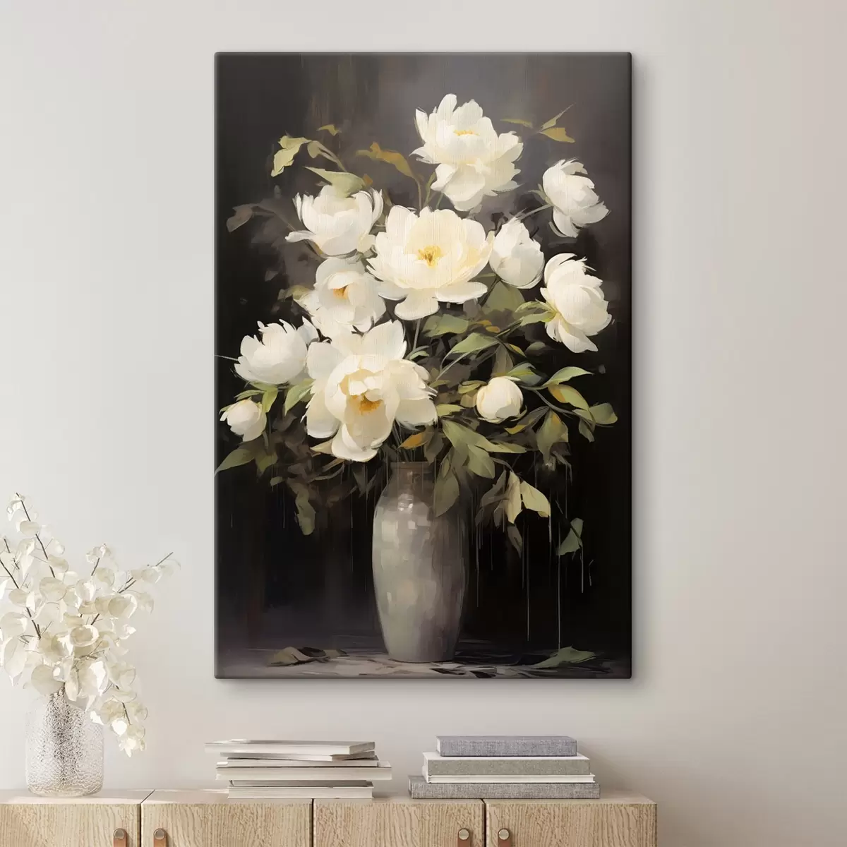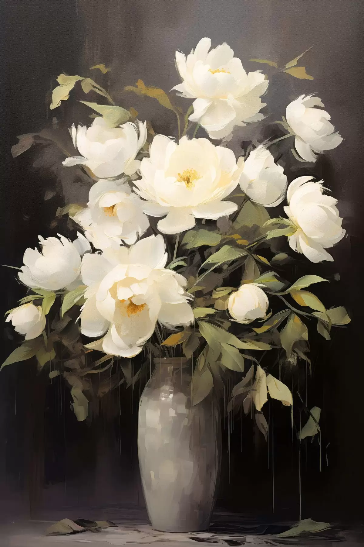 Wandbilder Zarte Pfingstrosen in einer Vase: Blumenkomposition im Stil der Malerei s45532