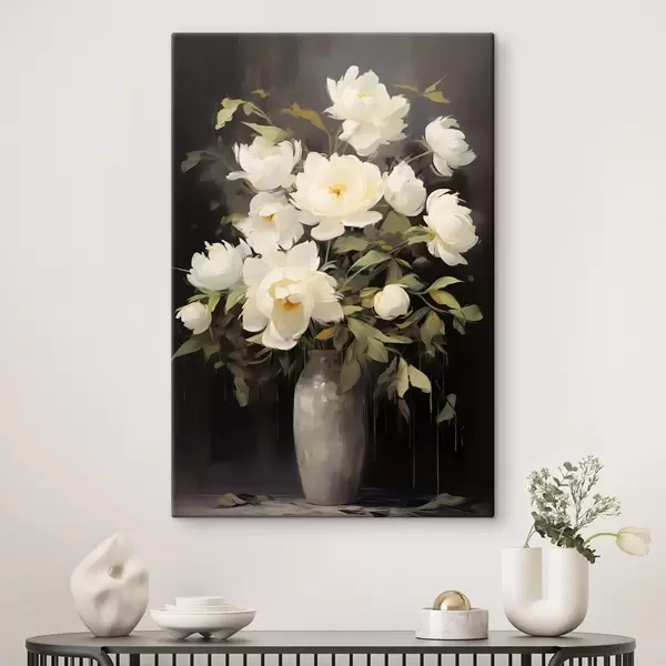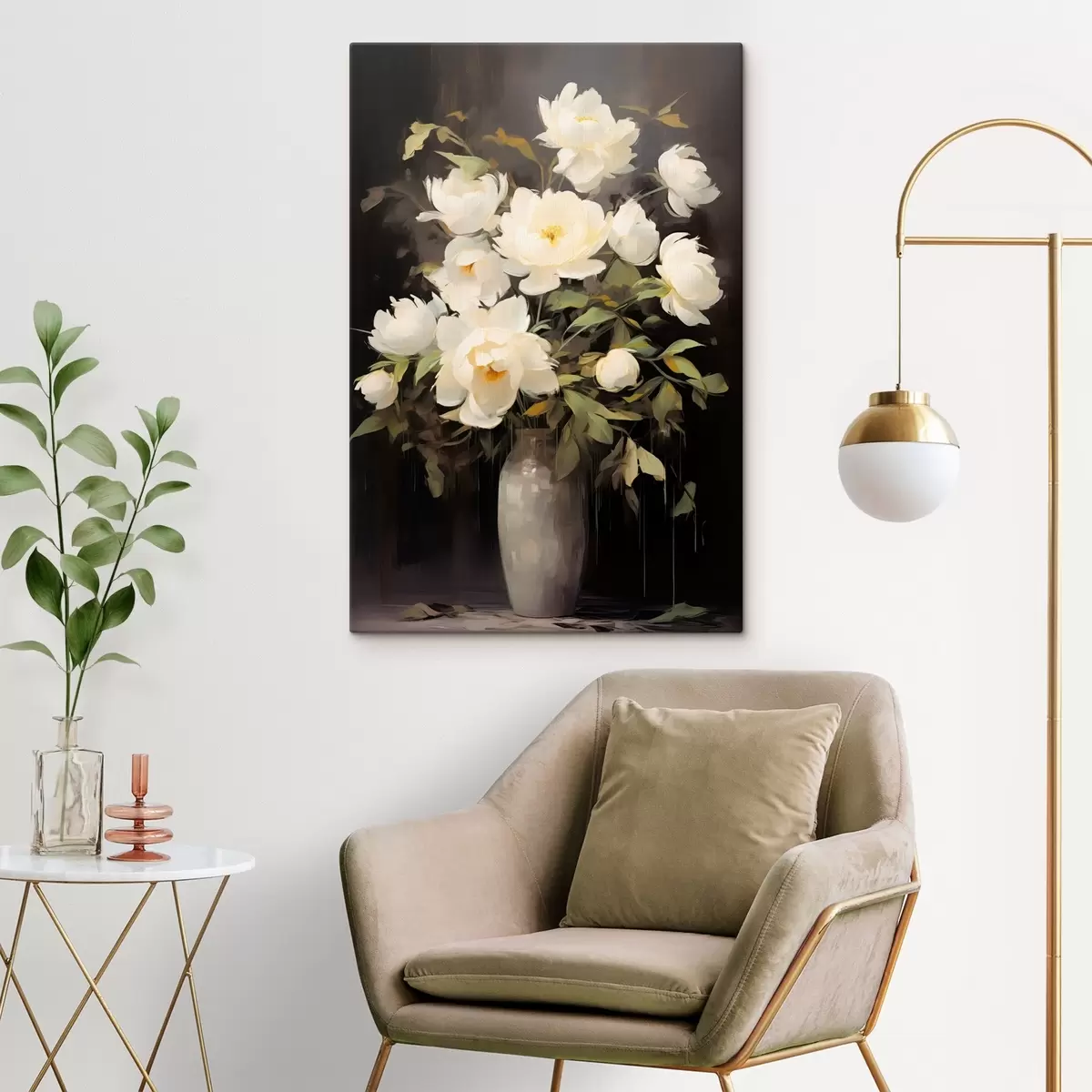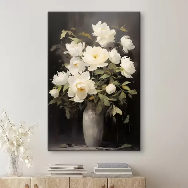Wandbilder Zarte Pfingstrosen in einer Vase: Blumenkomposition im Stil der Malerei Art. s45532