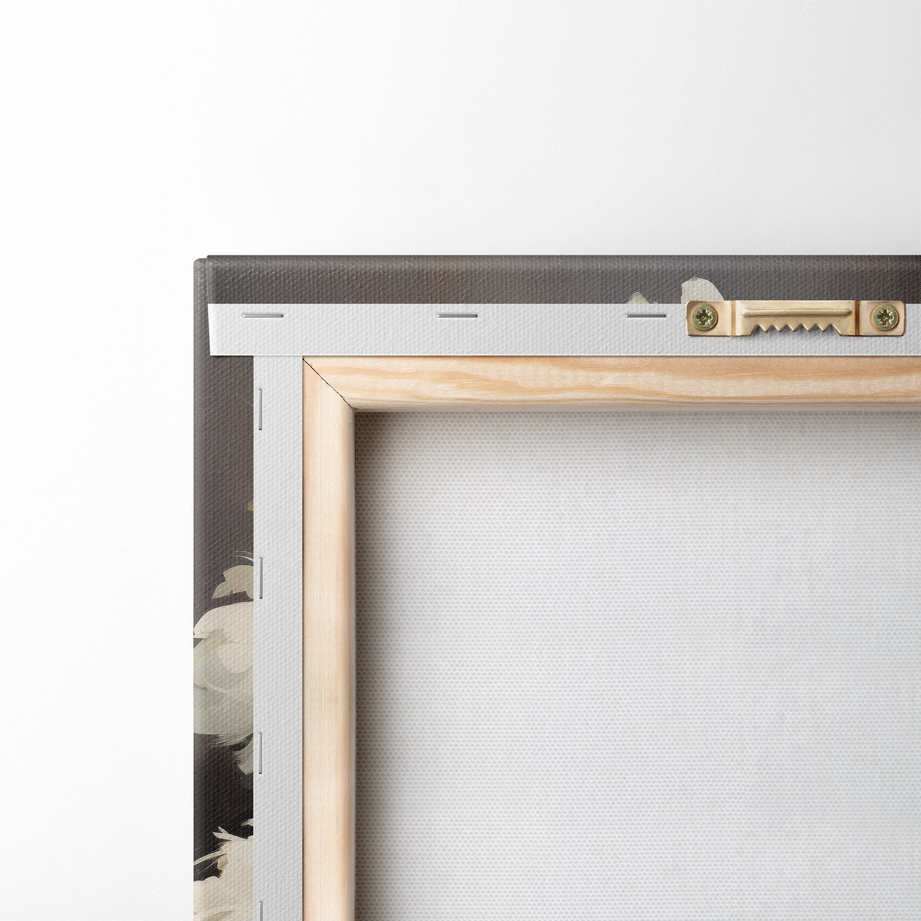 Sie können das Bild an Schrauben aufhängen. Dazu legen wir unseren Bildern Halterungen bei, mit denen Sie das Bild bequem aufhängen können.