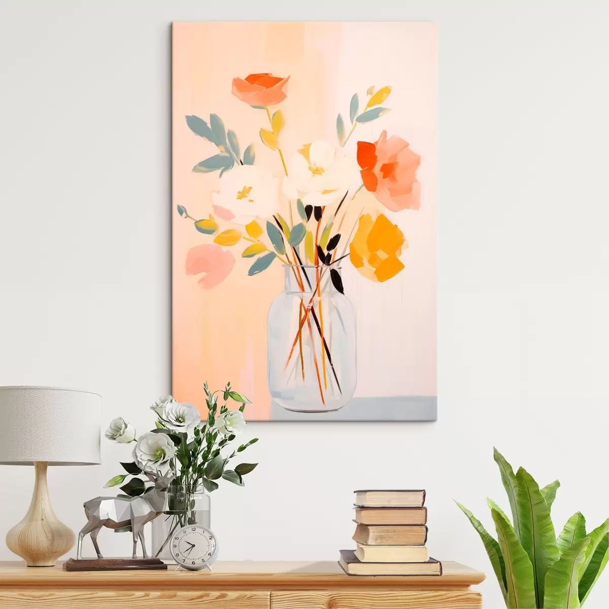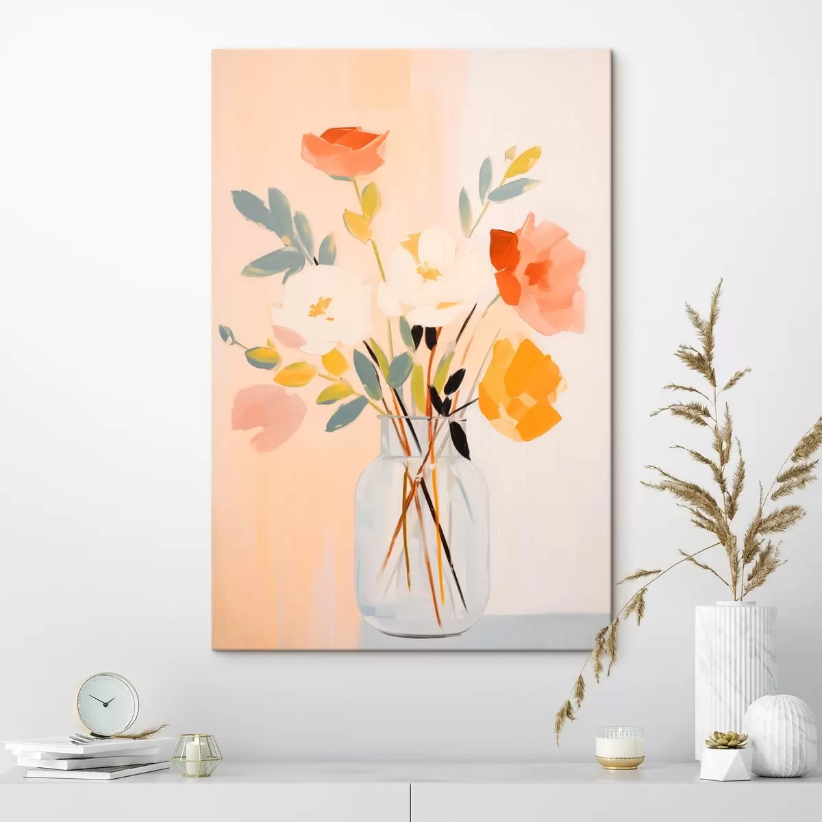 Wandbilder Dekorative Blumen: abstrakter Blumenstrauß in einer Vase auf einem hellen Hintergrund s45539
