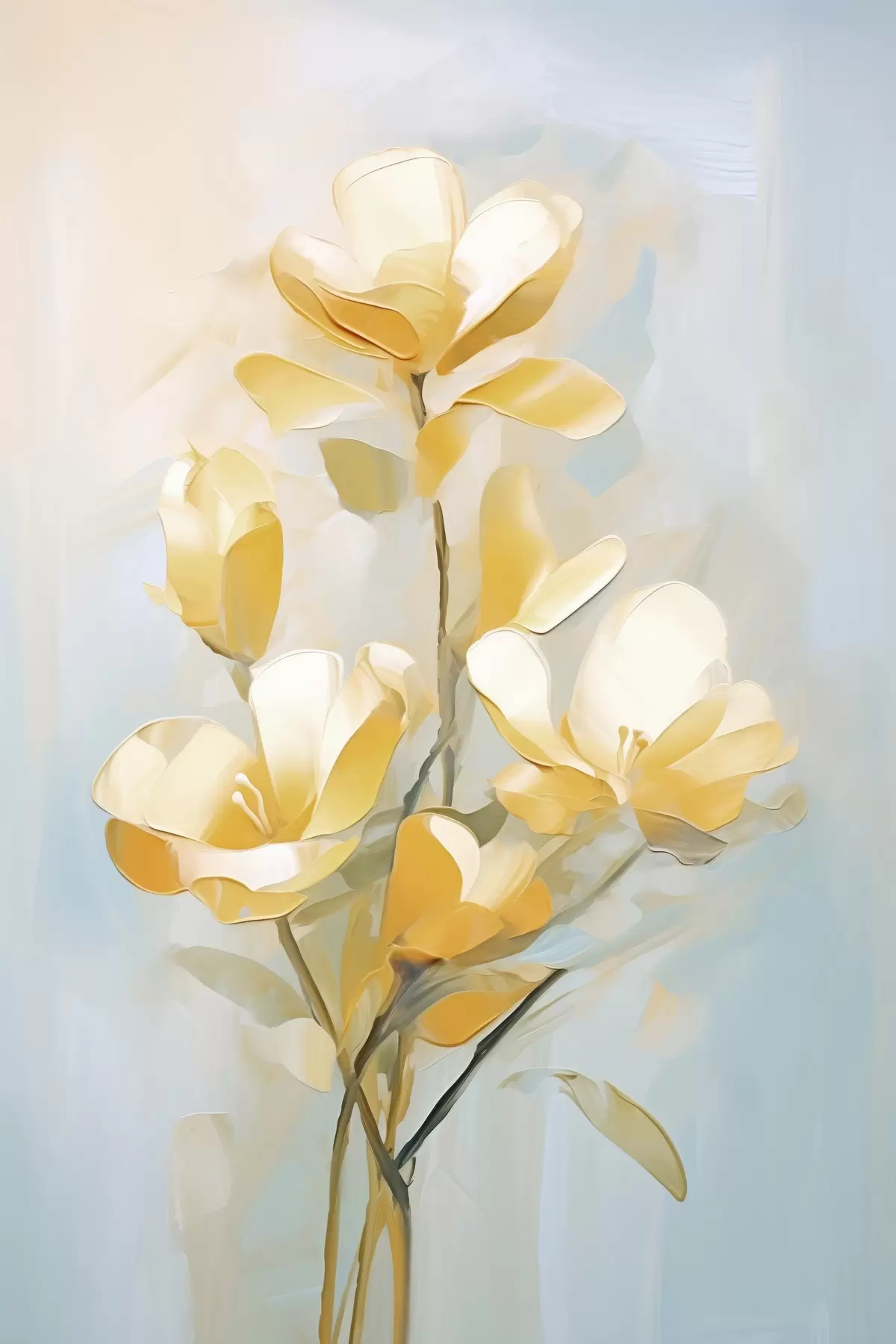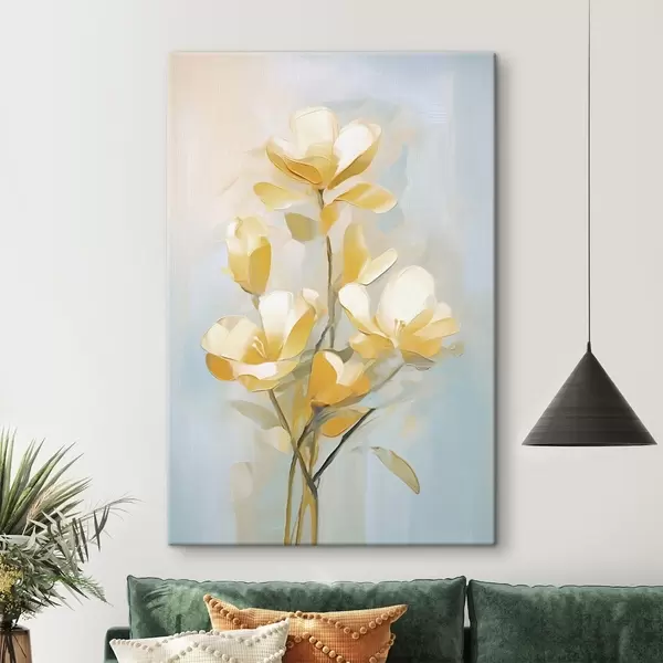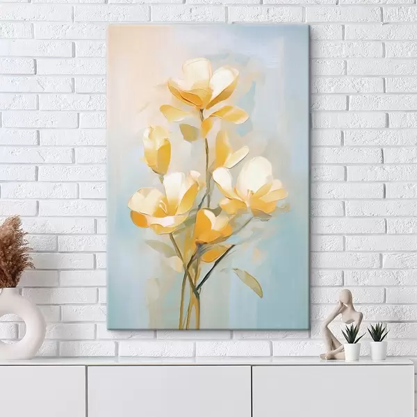 Wandbilder Blumenmotiv: Blumenstrauß in hellen Gelb- und Blautönen Art. s45540