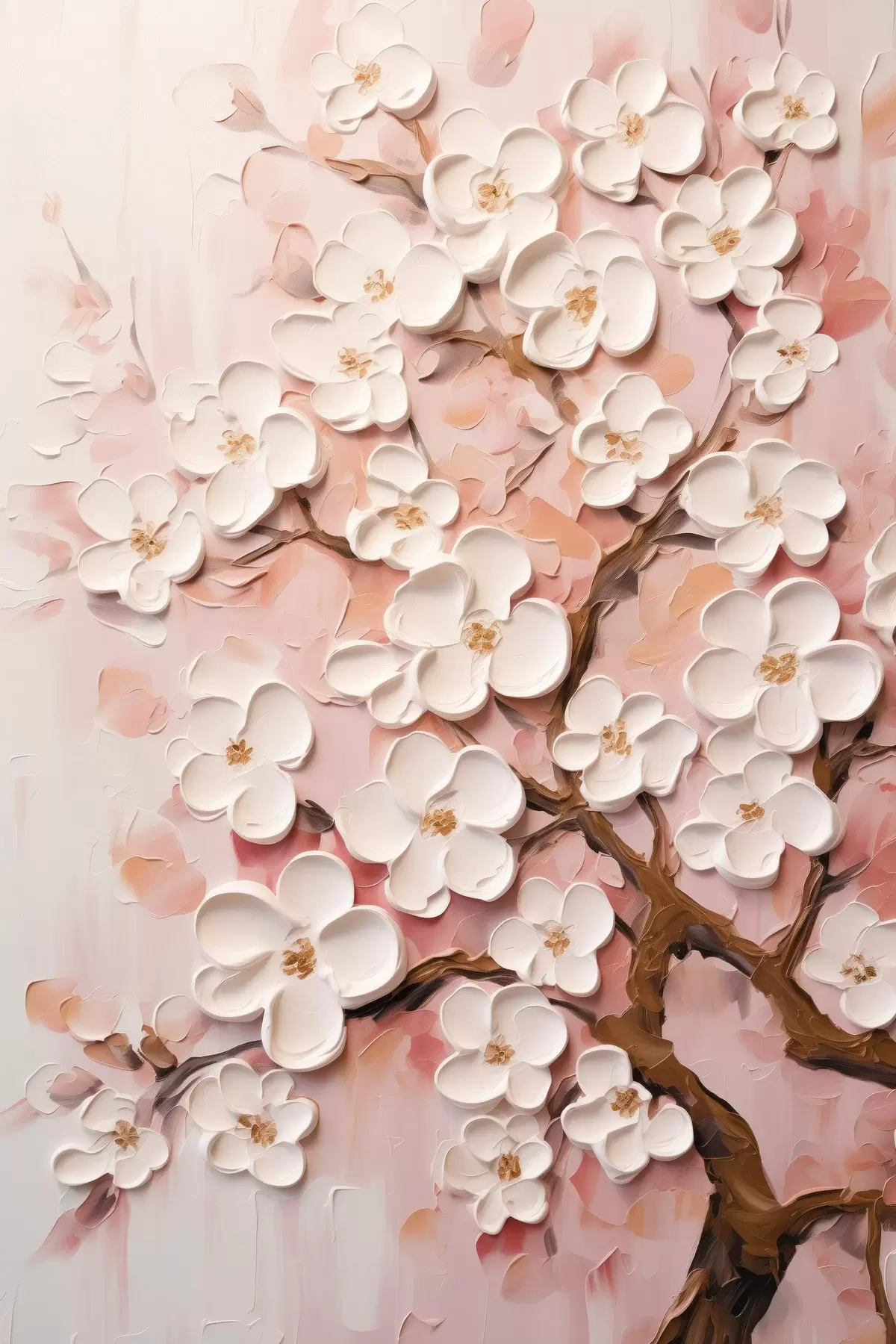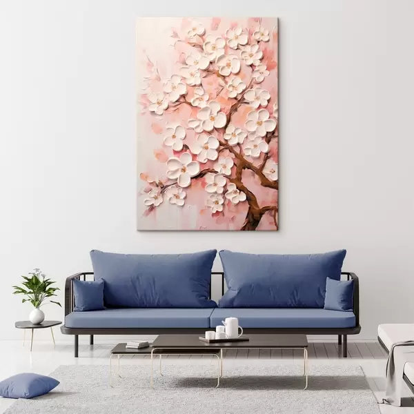 Wandbilder Blühender Zweig: Reliefkomposition in hellen Rosatönen Art. s45543