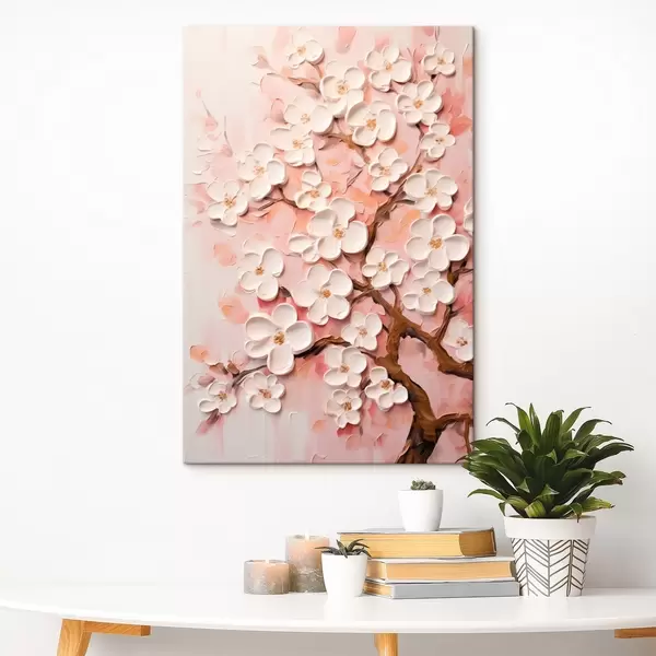 Wandbilder Blühender Zweig: Reliefkomposition in hellen Rosatönen s45543