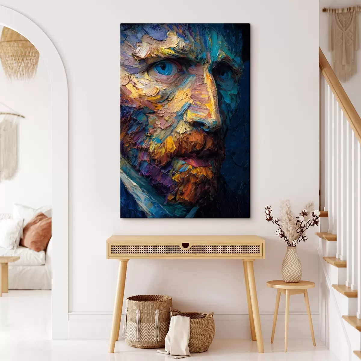 Wandbilder Dekoratives Van-Gogh-Porträt: Reliefmalerei in Blau- und Orangetönen s45546