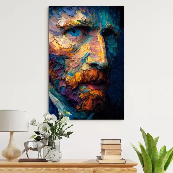 Wandbilder Dekoratives Van-Gogh-Porträt: Reliefmalerei in Blau- und Orangetönen s45546