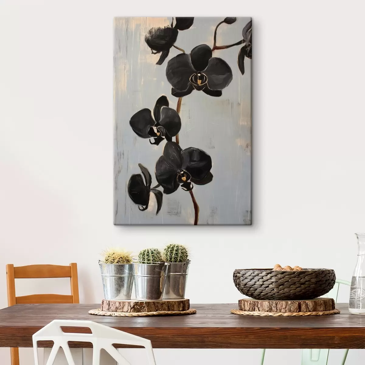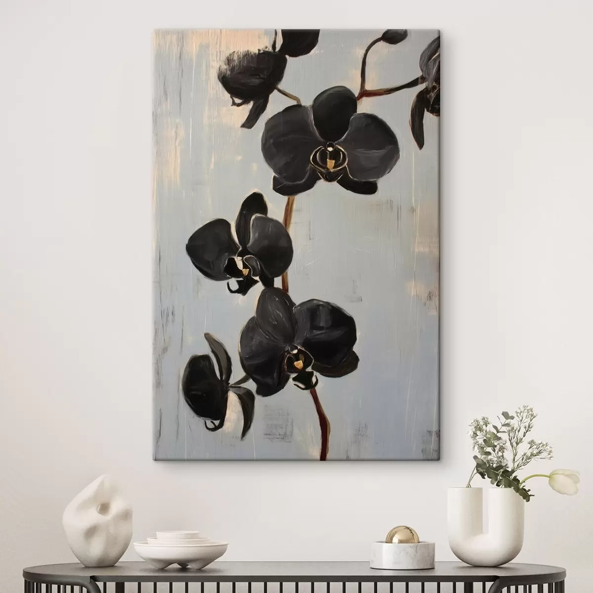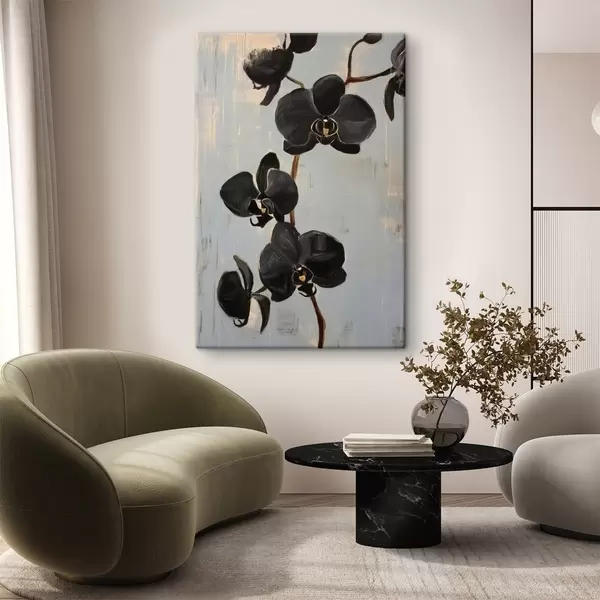Wandbilder Dekorative Orchideen: schwarze Blumen auf grauem Hintergrund s45547