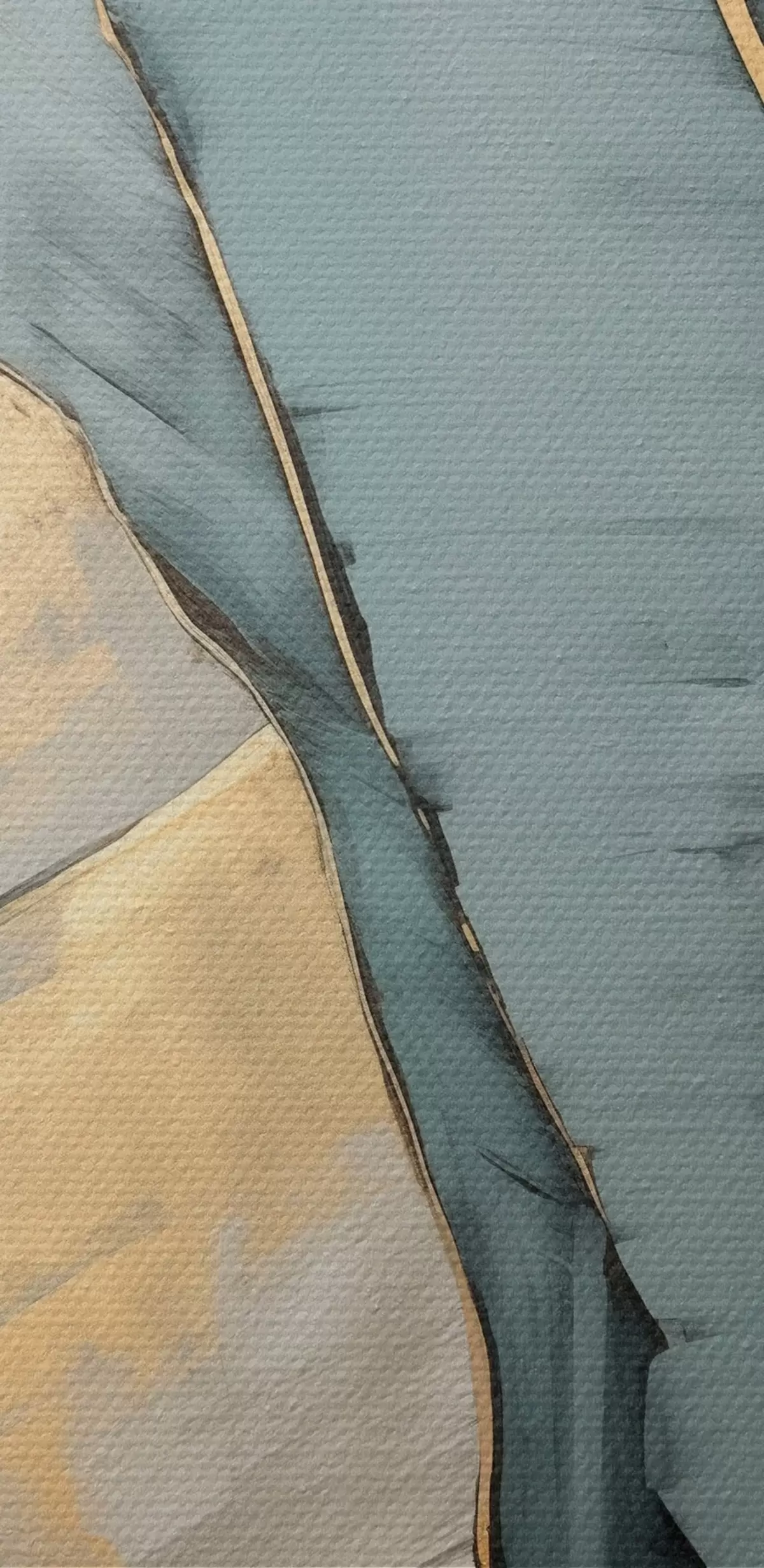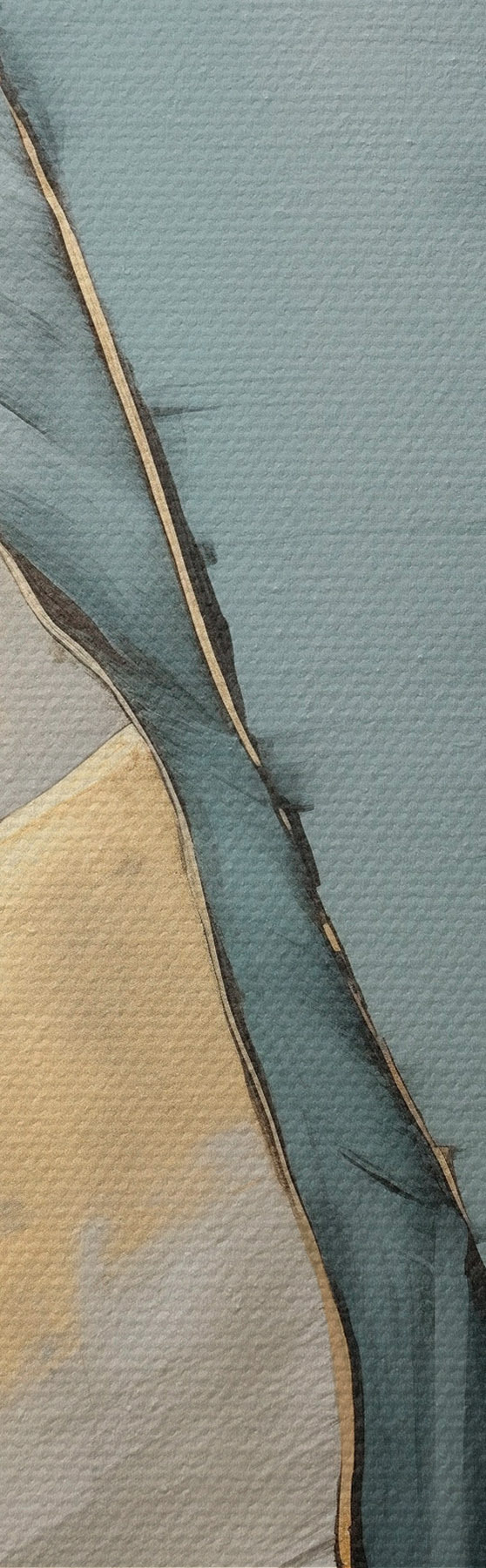Wandbilder Gedämpfte blaue, graue und gelbe Bananenblätter mit sichtbaren Pinselstrichen vor einem weißen abstrakten Hintergrund s45552
