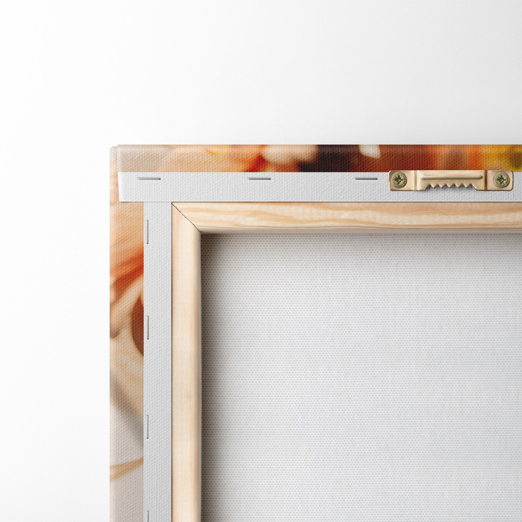 Drei Materialtypen stehen zur Verfügung: Economic Canvas - ein dichtes und haltbares Material für den Digitaldruck, identisch mit Malerleinwand, wasserfeste Oberfläche, realistische Wiedergabe von Details, mittelkörniges Material. Premium Canvas - die Textur ähnelt der einer Malerleinwand (verwobene kleine Fäden). Weiche, detaillierte Wiedergabe des Bildes auf einer matten Oberfläche. Eco-Premium - hochwertiges Gewebe aus 100% Baumwolle. Dank der natürlichen Baumwollfasern ist das Material langlebig und verschleißfest. Hervorragende Farbwiedergabe und Detailtreue.