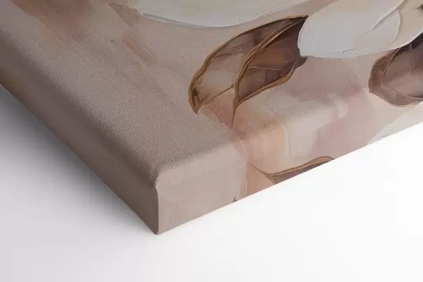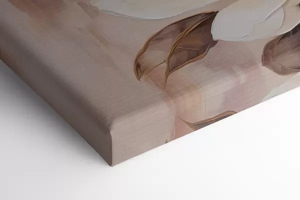 Wandbilder Weiße Magnolienblüten vor einem weichen, unscharfen Hintergrund aus Beige- und Brauntönen, Malstil s45572