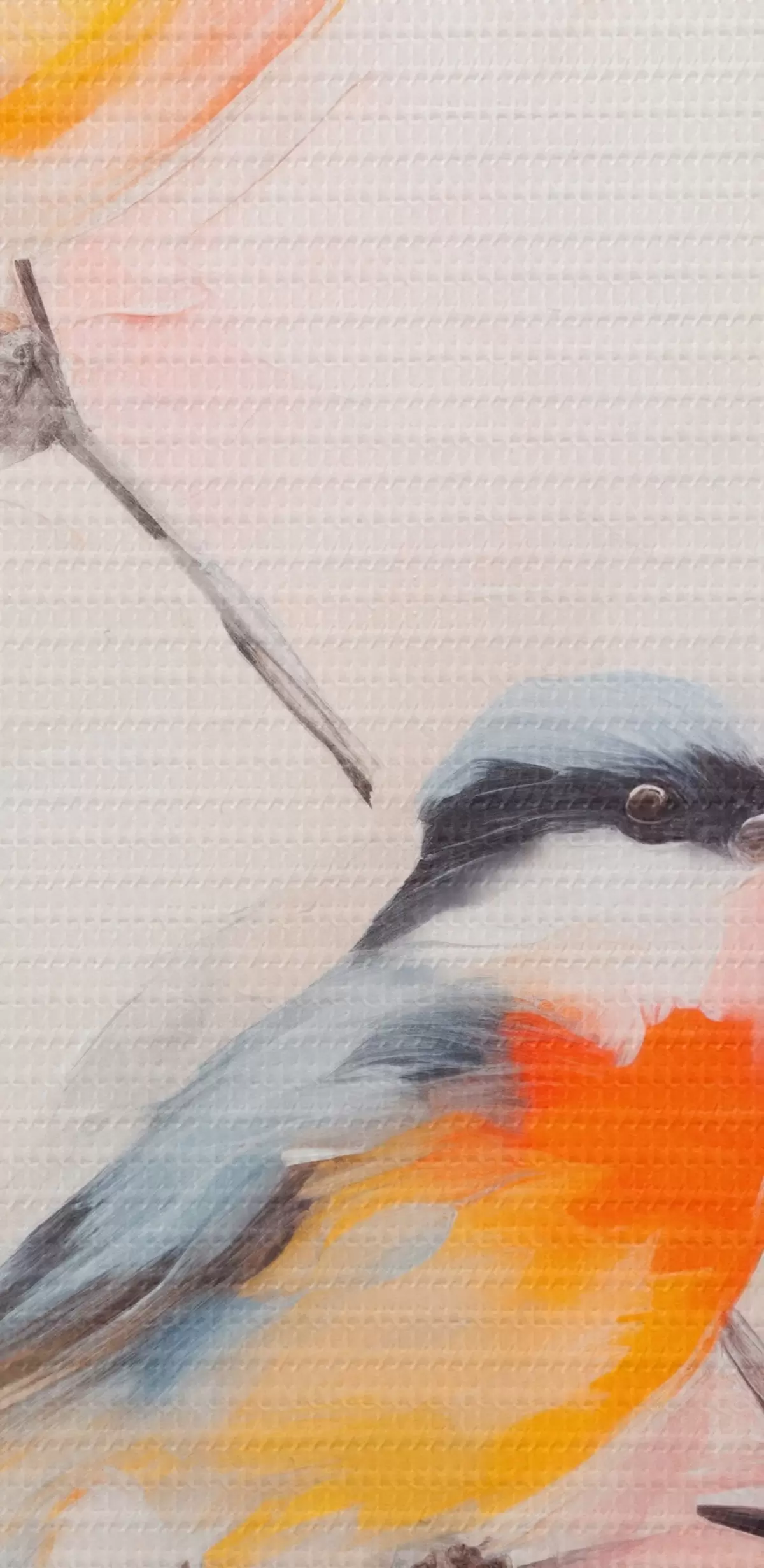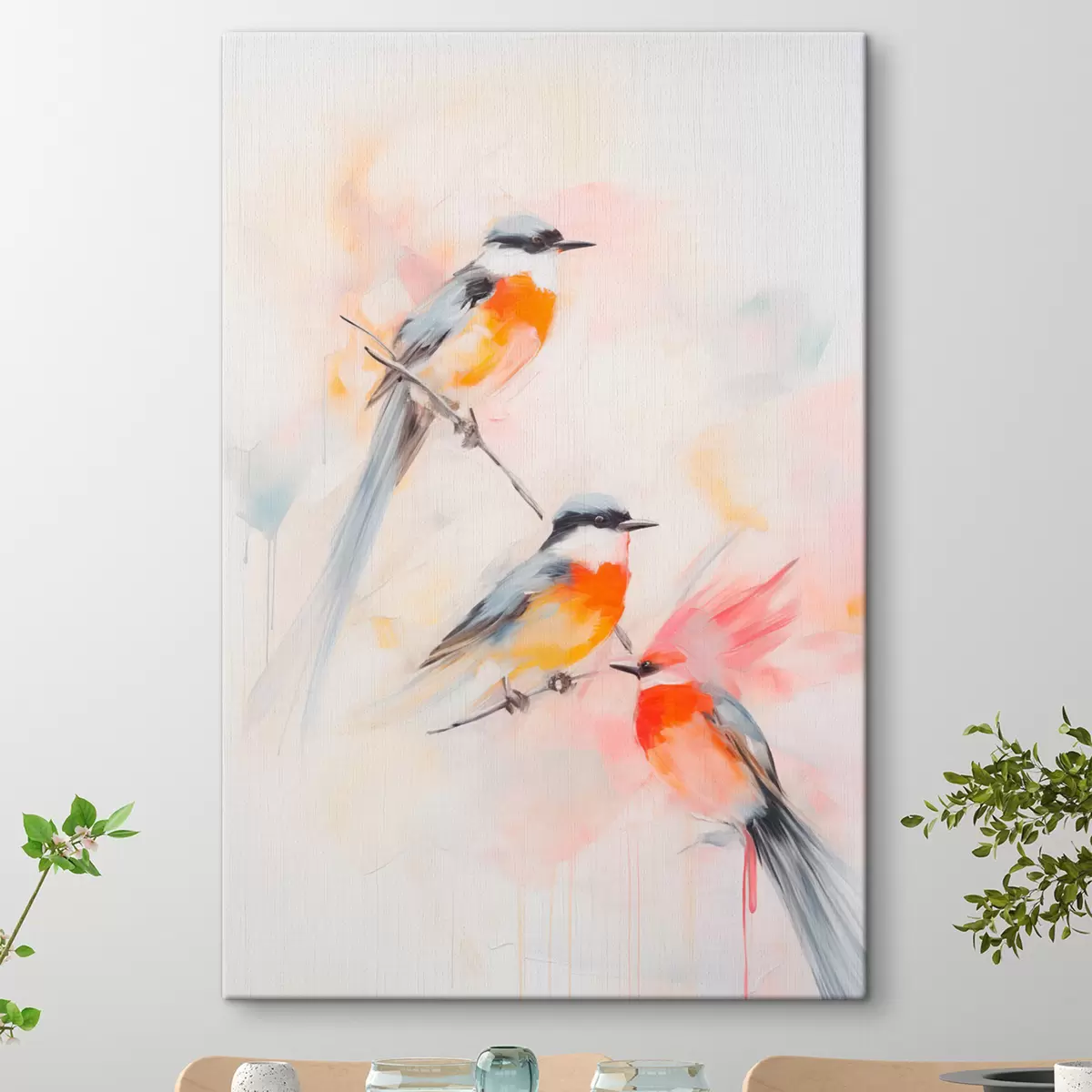 Wandbilder Vögel auf Zweigen, weiche Pastellfarben, heller Hintergrund mit rosa und weißen Farbtönen Art. s45577