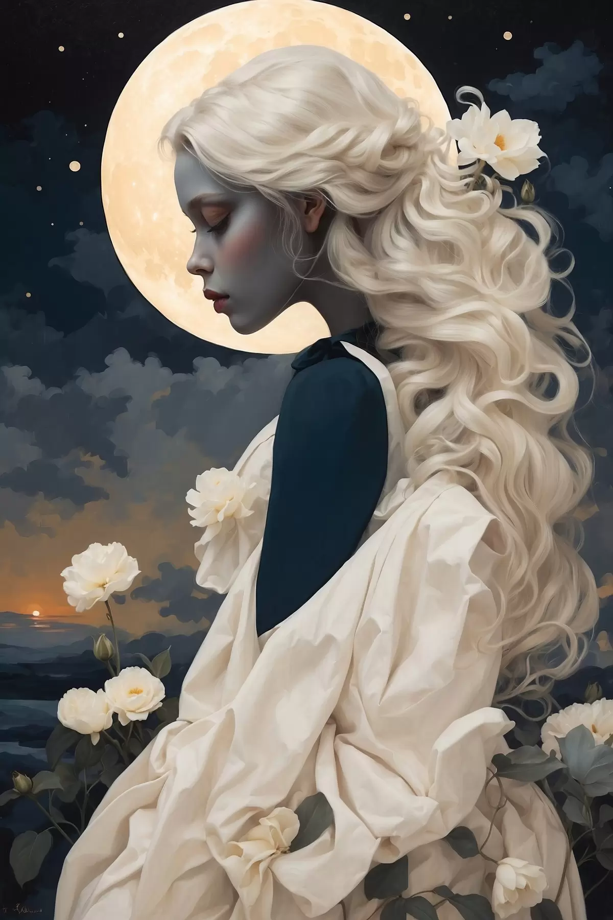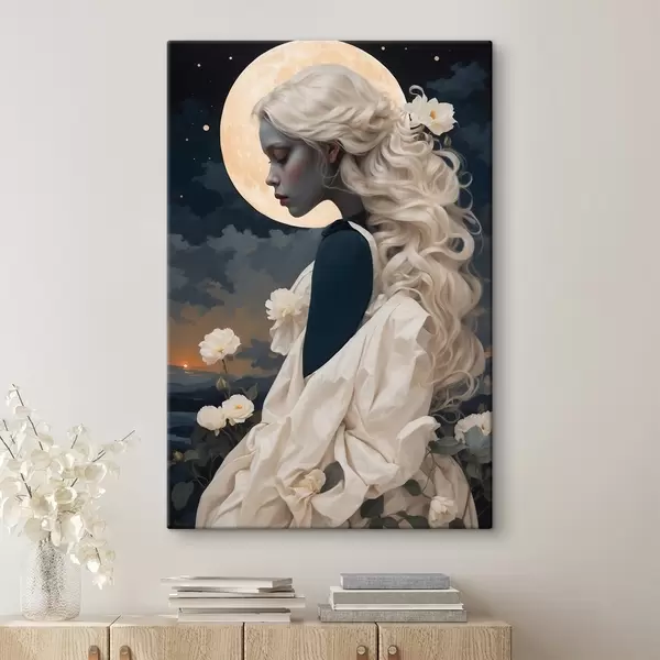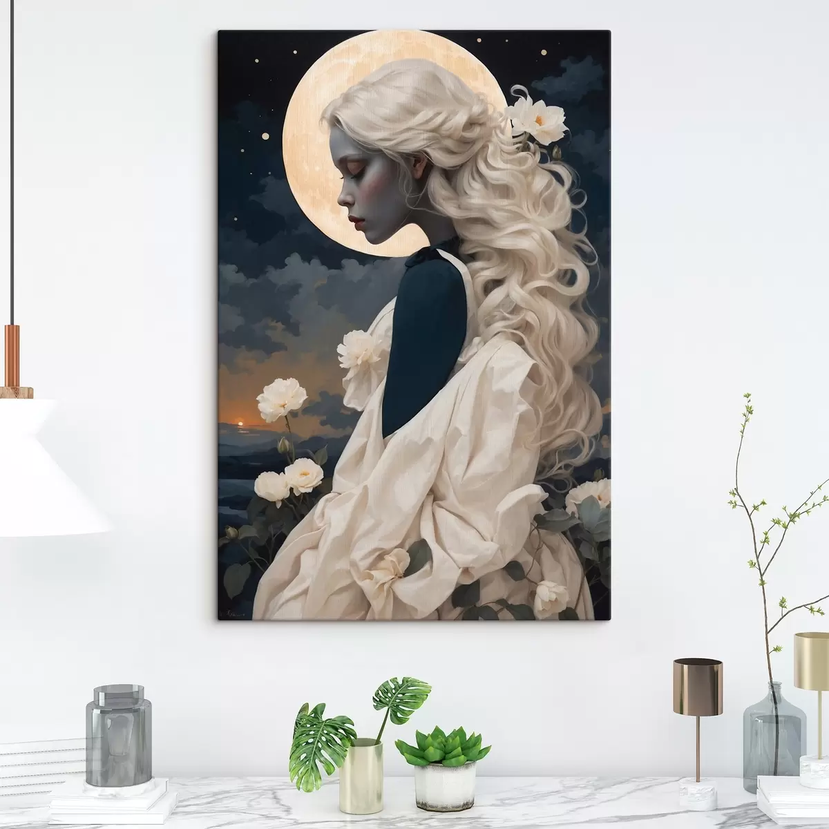 Wandbilder Frau mit weißem Haar im Mondschein Art. s45622