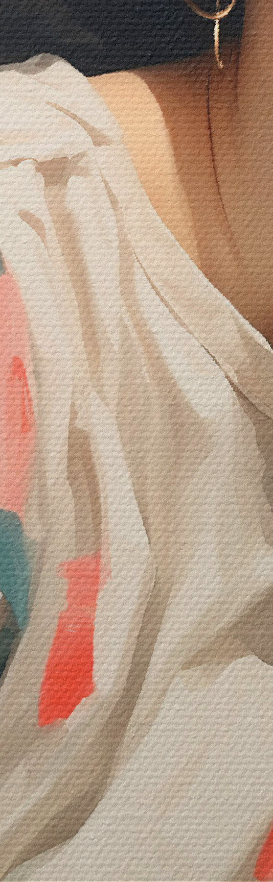 Um die Leinwand auf Keilrahmen zu spannen, ohne das Bild zu beschädigen, verwenden wir ein gespiegeltes Bild.
