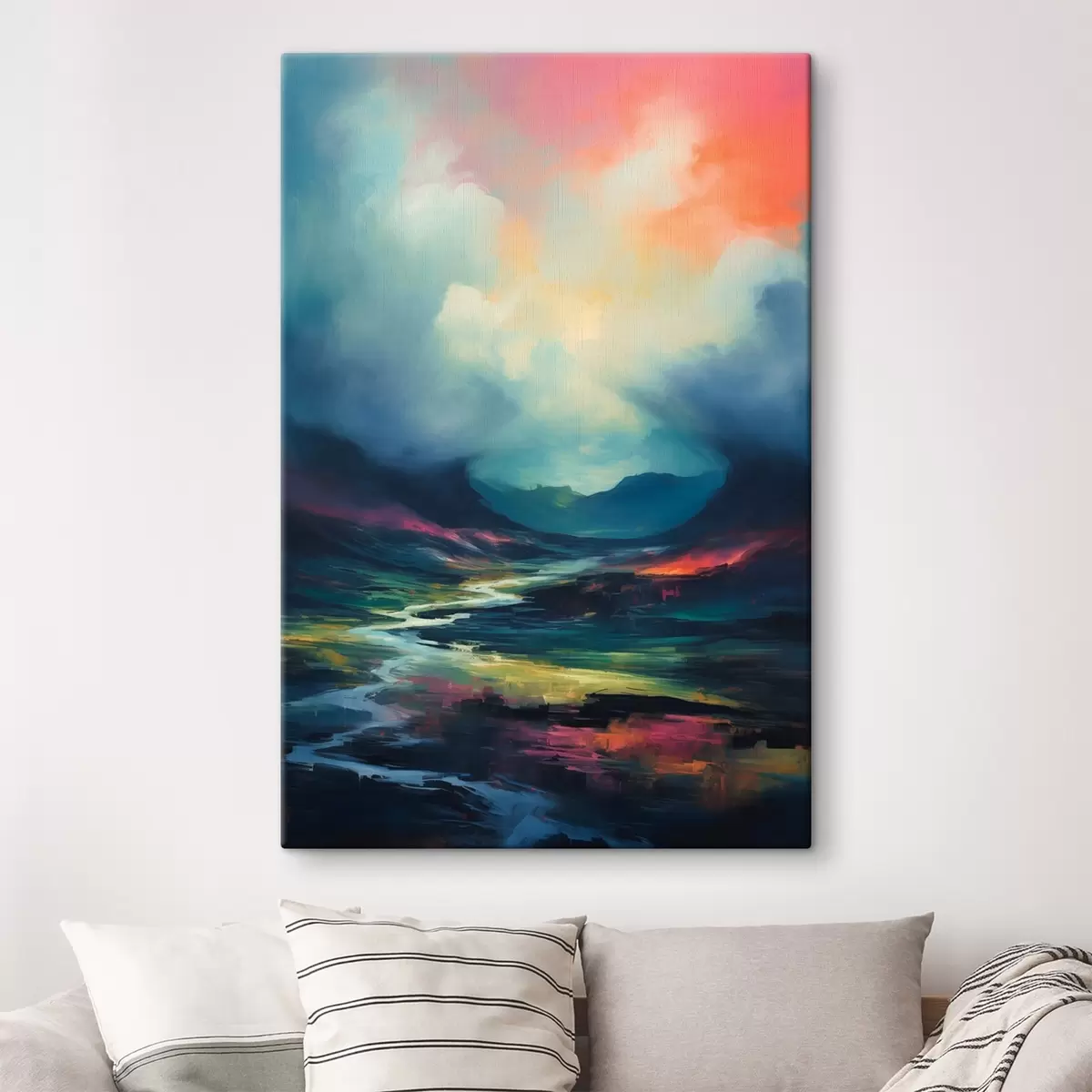 Wandbilder Abstrakte Landschaft mit einem Fluss und Bergen Art. s45627