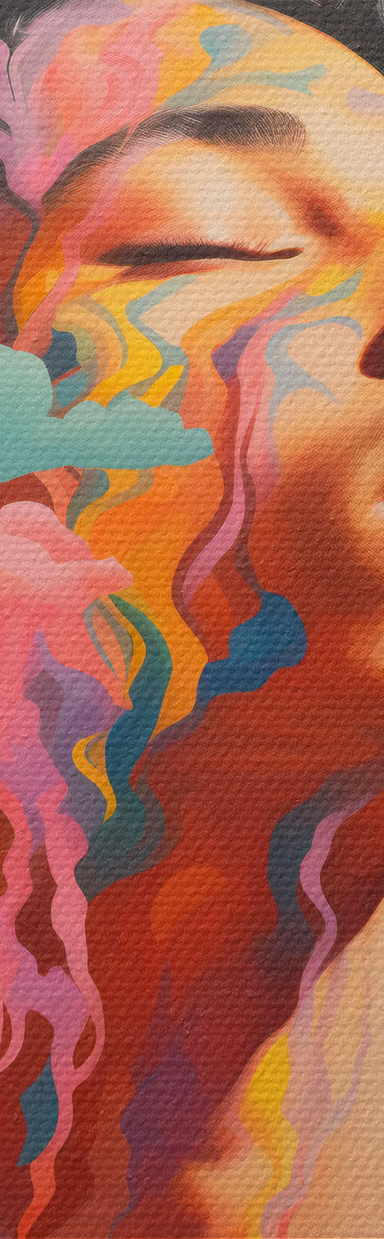 Um die Leinwand auf Keilrahmen zu spannen, ohne das Bild zu beschädigen, verwenden wir ein gespiegeltes Bild.