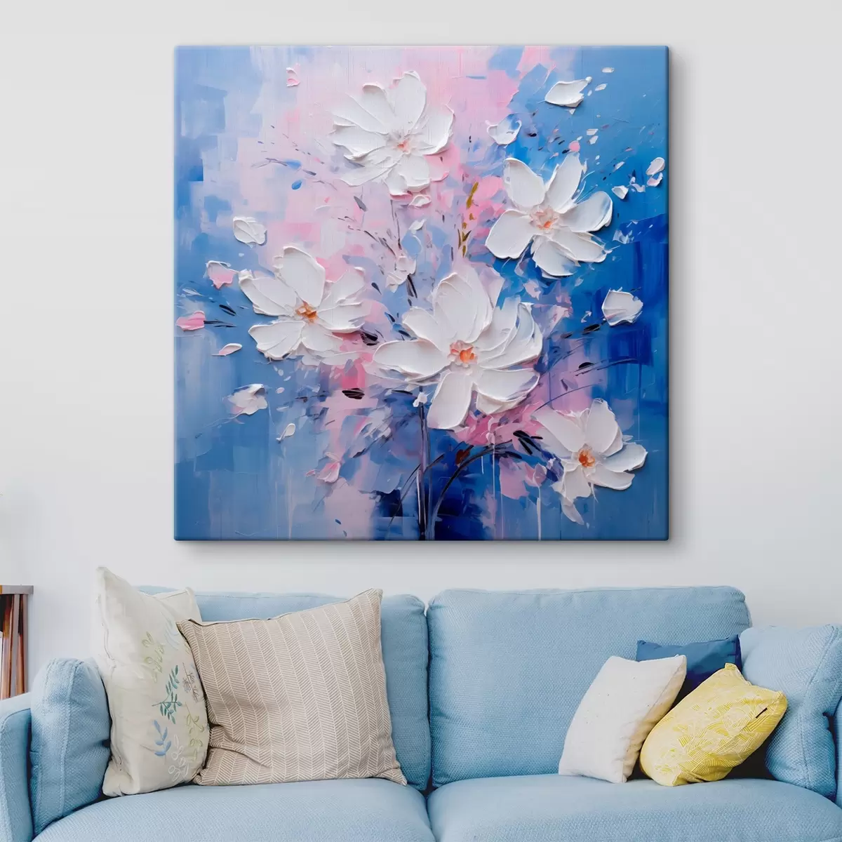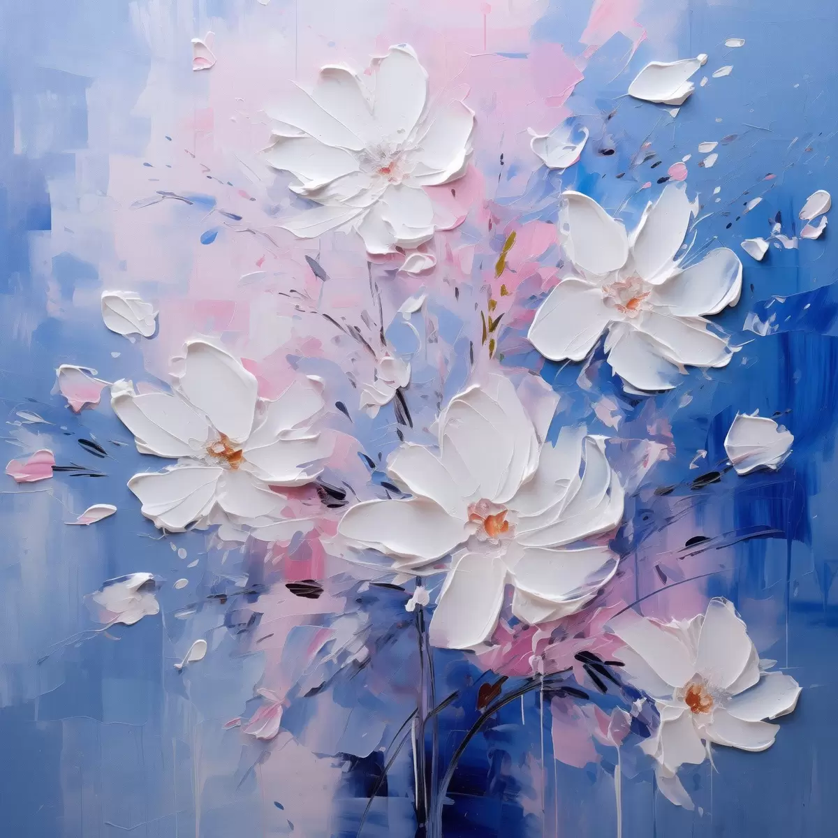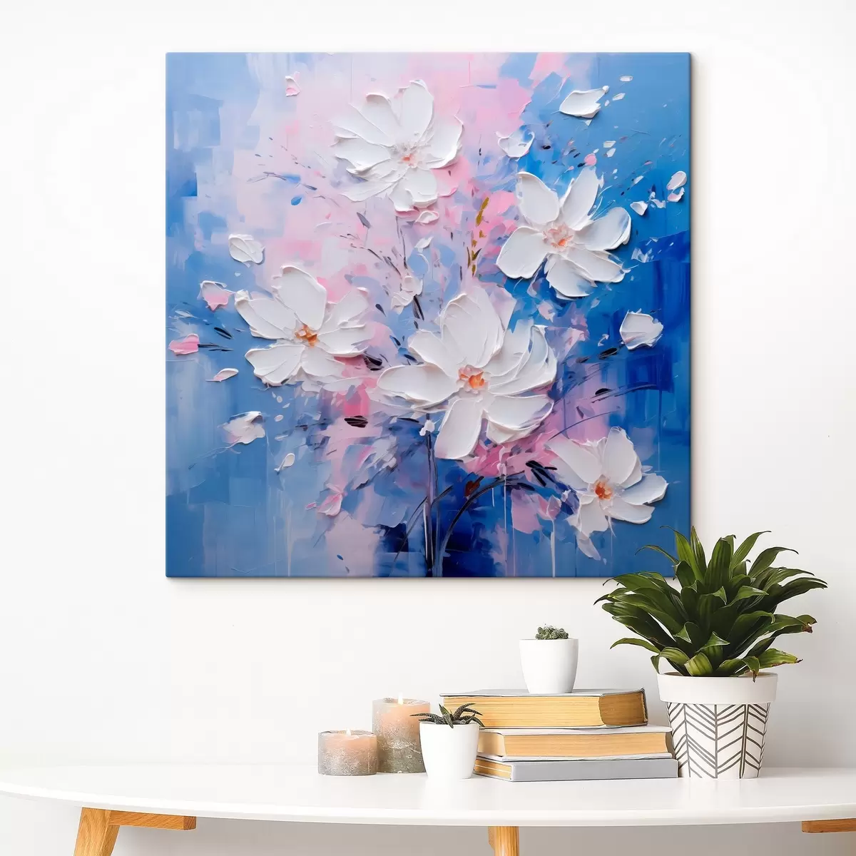 Wandbilder Volumetrische Blumen auf blauem Hintergrund im Impasto-Stil Art. s45648