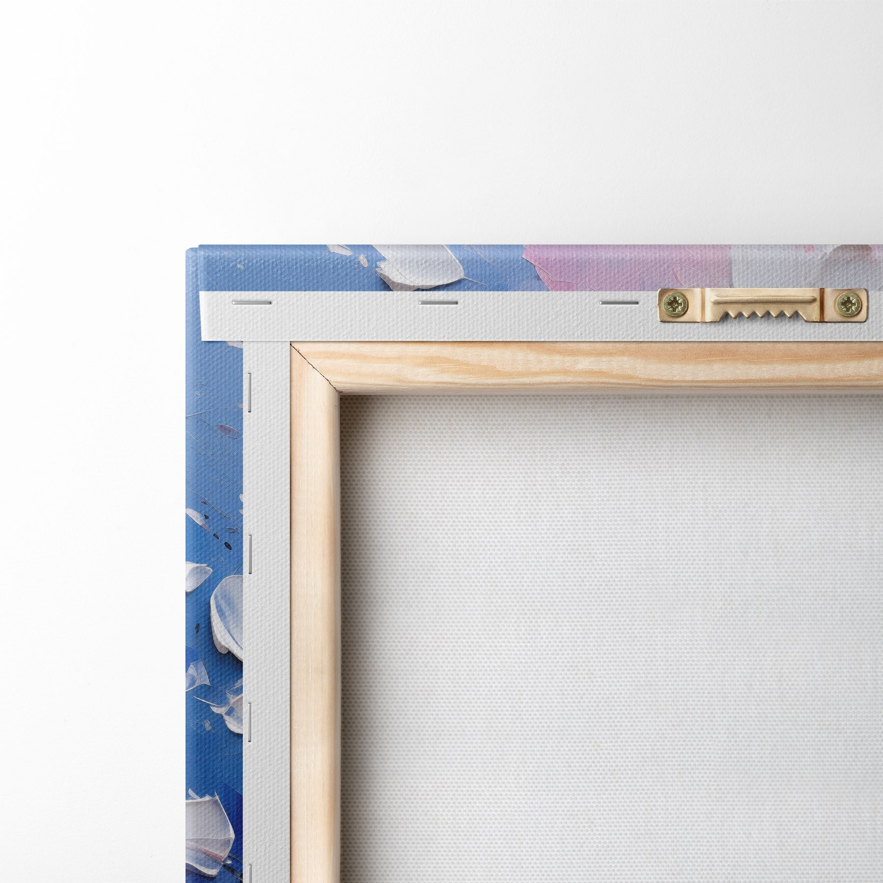 Um die Leinwand auf Keilrahmen zu spannen, ohne das Bild zu beschädigen, verwenden wir ein gespiegeltes Bild.