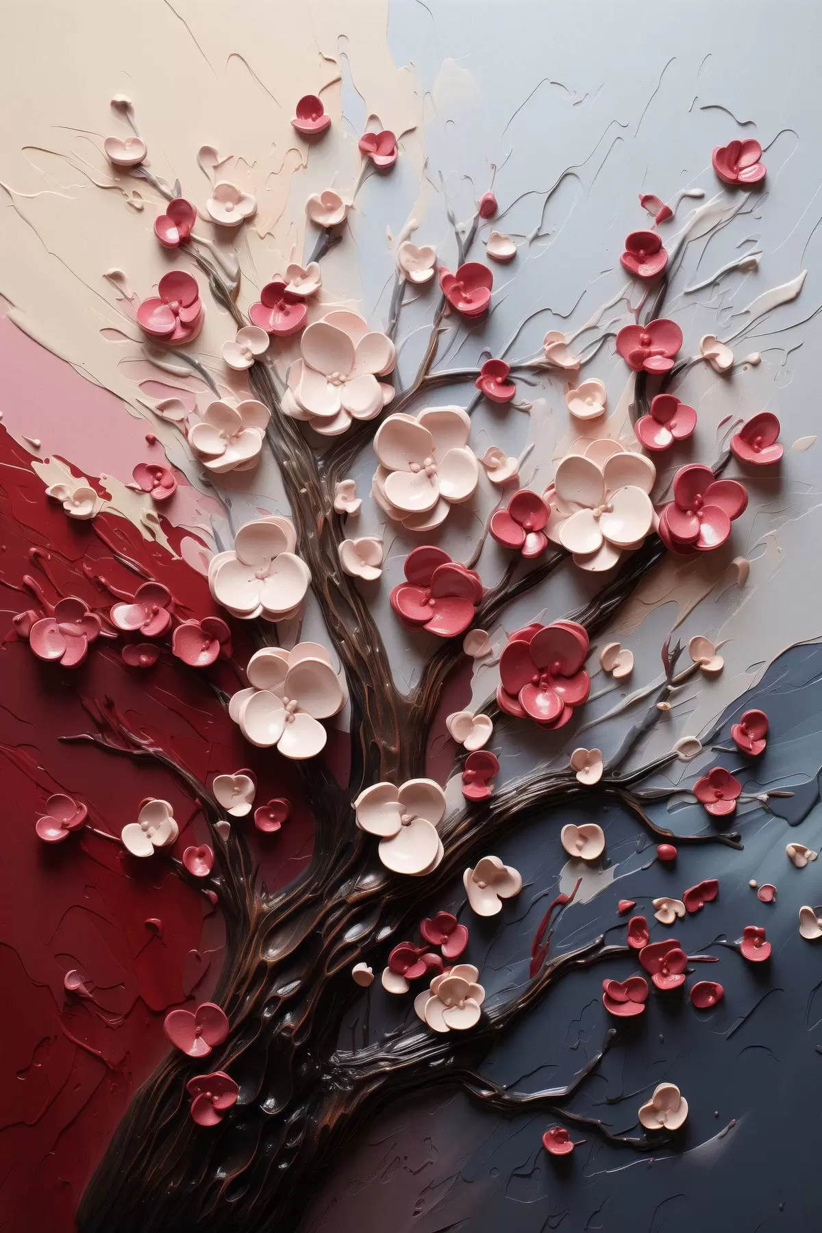 Wandbilder Volumetrische Sakura in strukturiertem Malstil Art. s45650