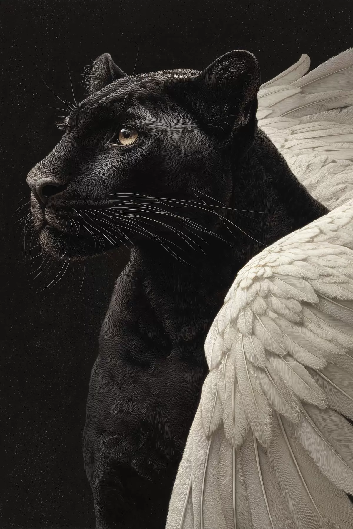Wandbilder Schwarzer Panther mit Flügeln im Fantasy-Stil Art. s45653