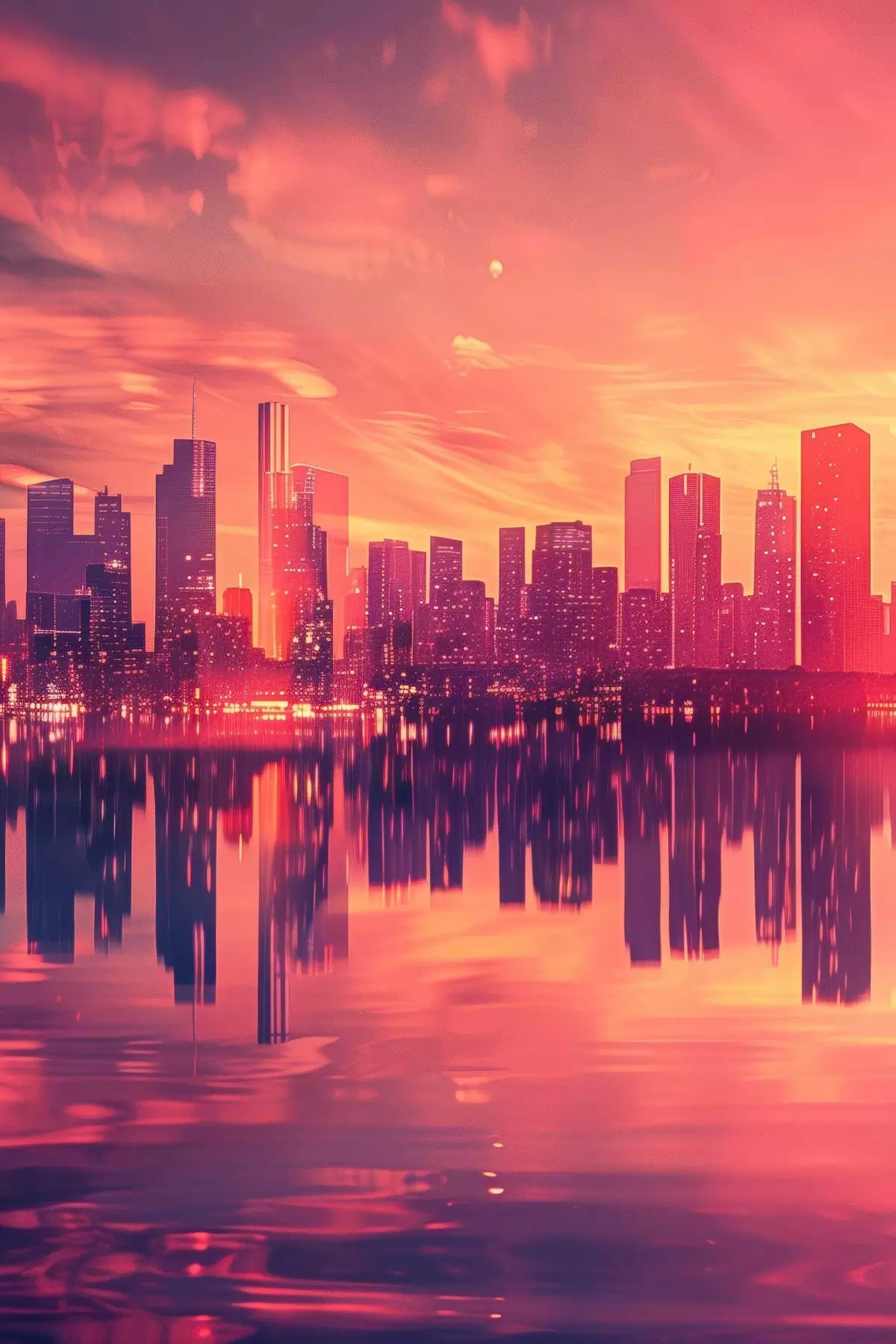 Wandbilder Stadt bei Sonnenuntergang s45658