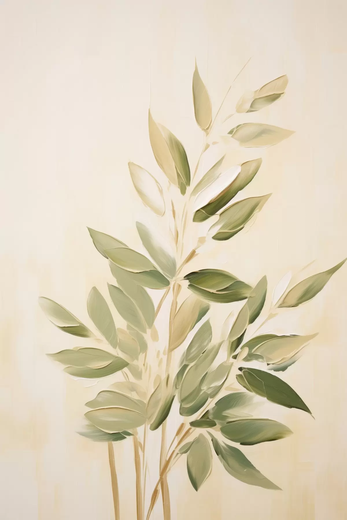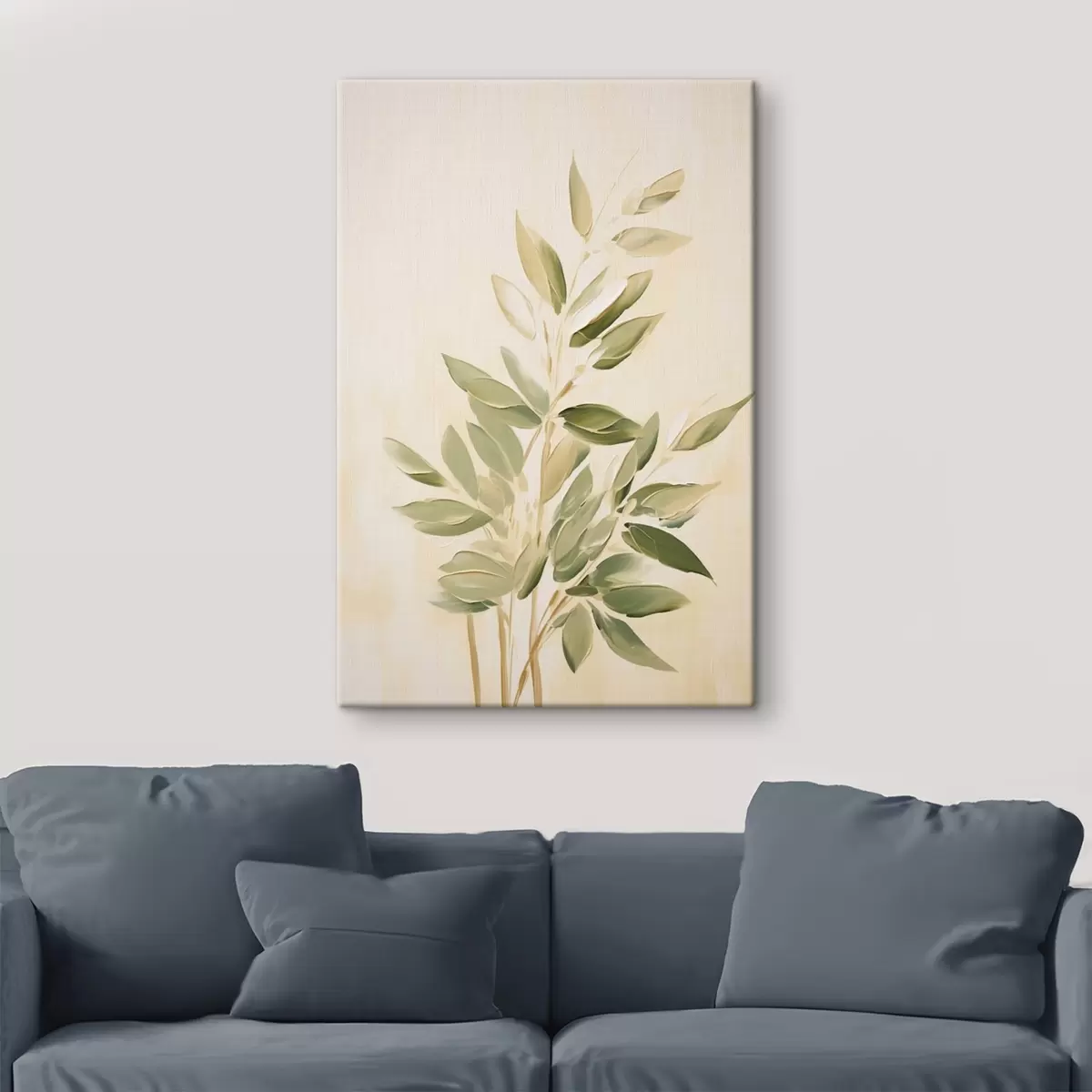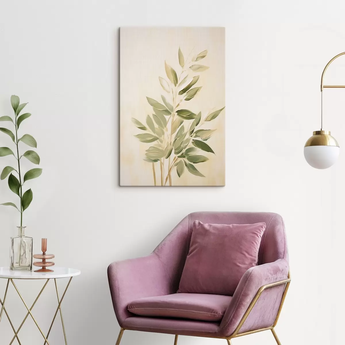 Wandbilder Zweig mit grünen Blättern auf einem hellbeigen Hintergrund Art. s45689