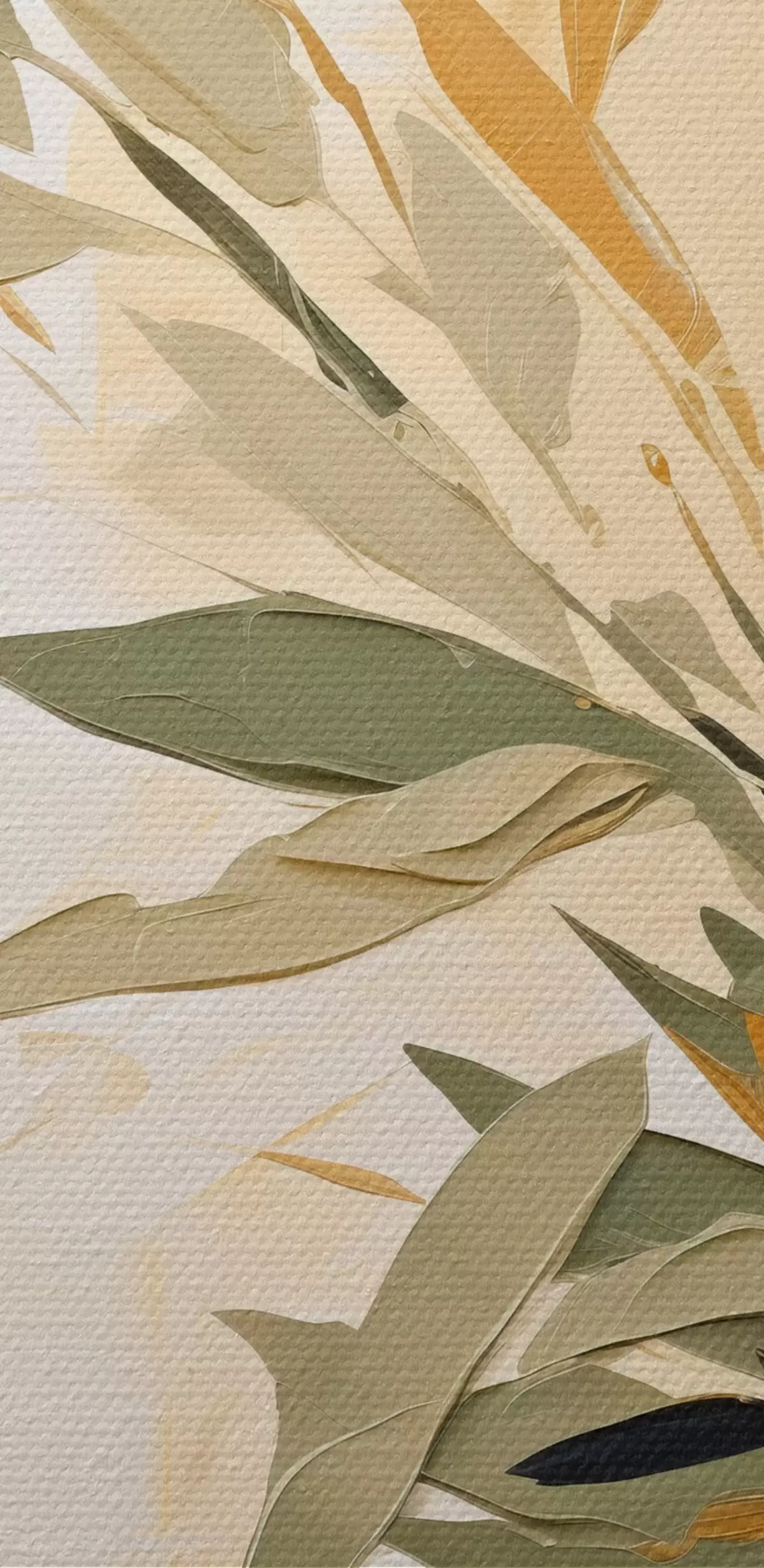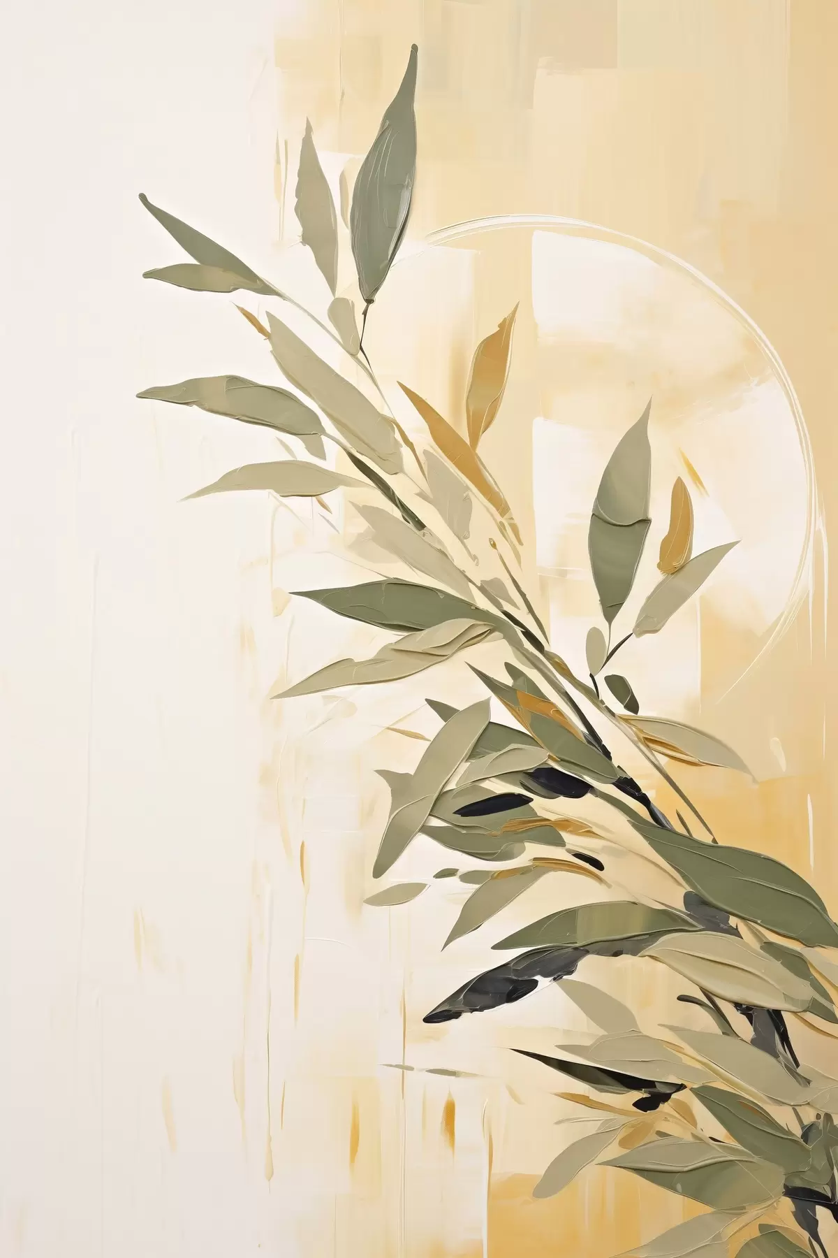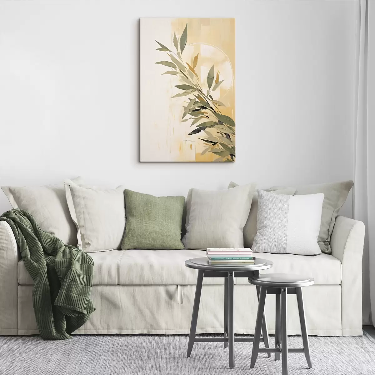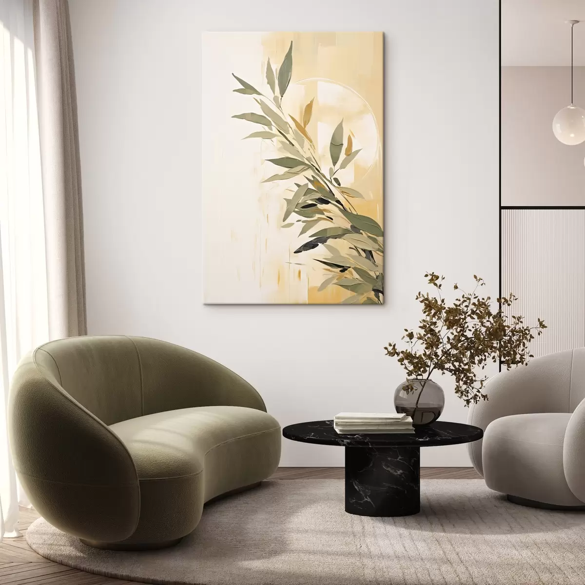 Wandbilder Botanischer Zweig mit grünen Blättern auf einem warmen Hintergrund Art. s45690
