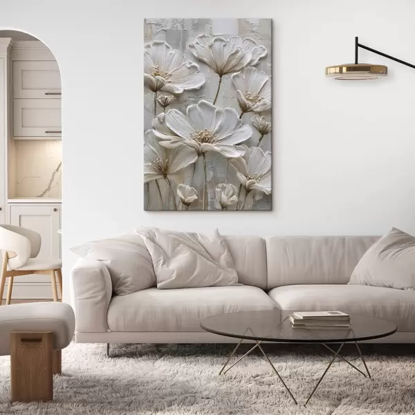 Wandbilder cremefarbene Blumen im Imitations-Impasto-Stil Art. s45713