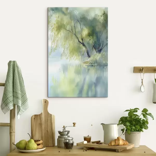 Wandbilder weidenbaum am Seeufer im Aquarellstil s45715
