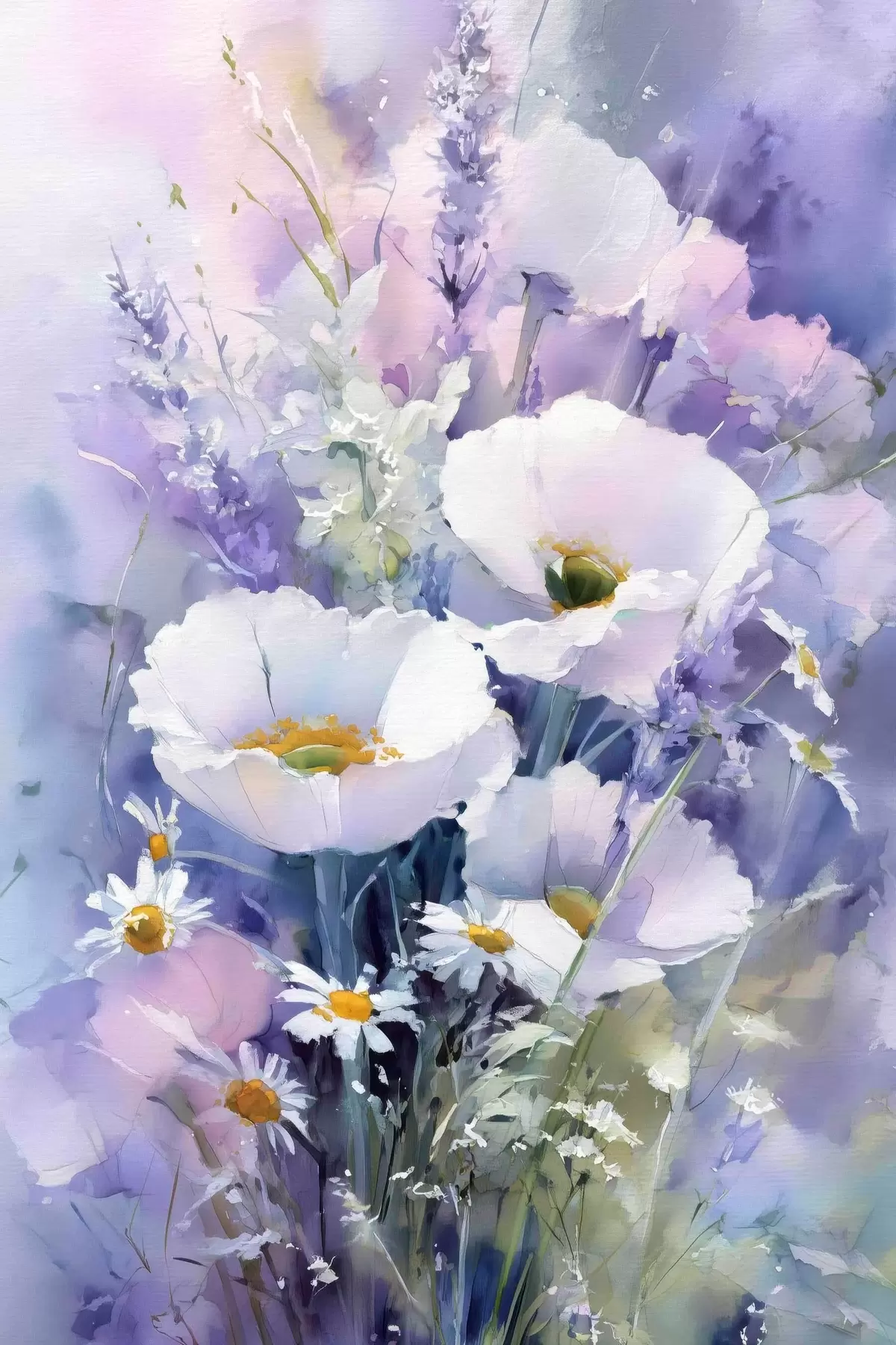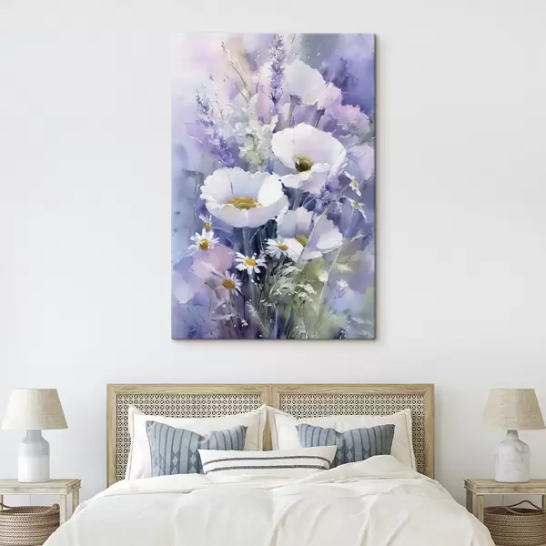 Wandbilder aquarellstrauß in Lila- und Weißtönen Art. s45720