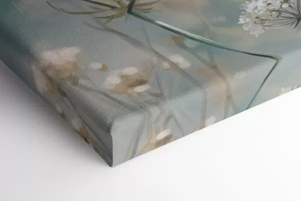 Wandbilder Königin-Annes-Spitze-Blumen im Aquarellstil auf blauem Hintergrund Art. s45721