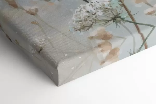 Wandbilder Königin-Annes-Spitze-Blumen im Aquarellstil auf blauem Hintergrund Art. s45722