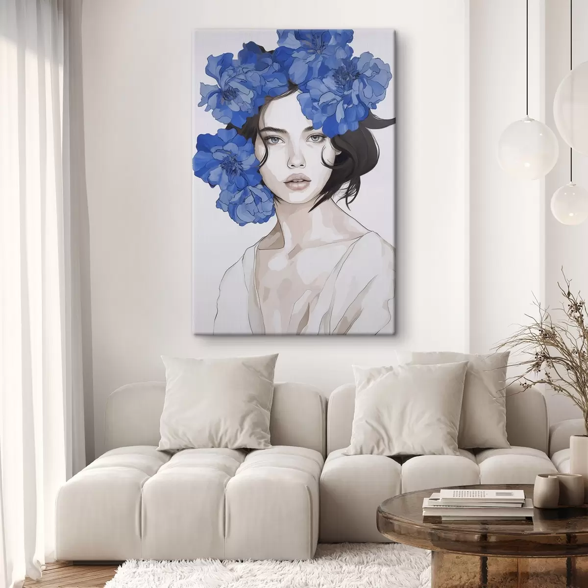 Wandbilder Porträt eines Mädchens mit blauen Blumen Art. s45756