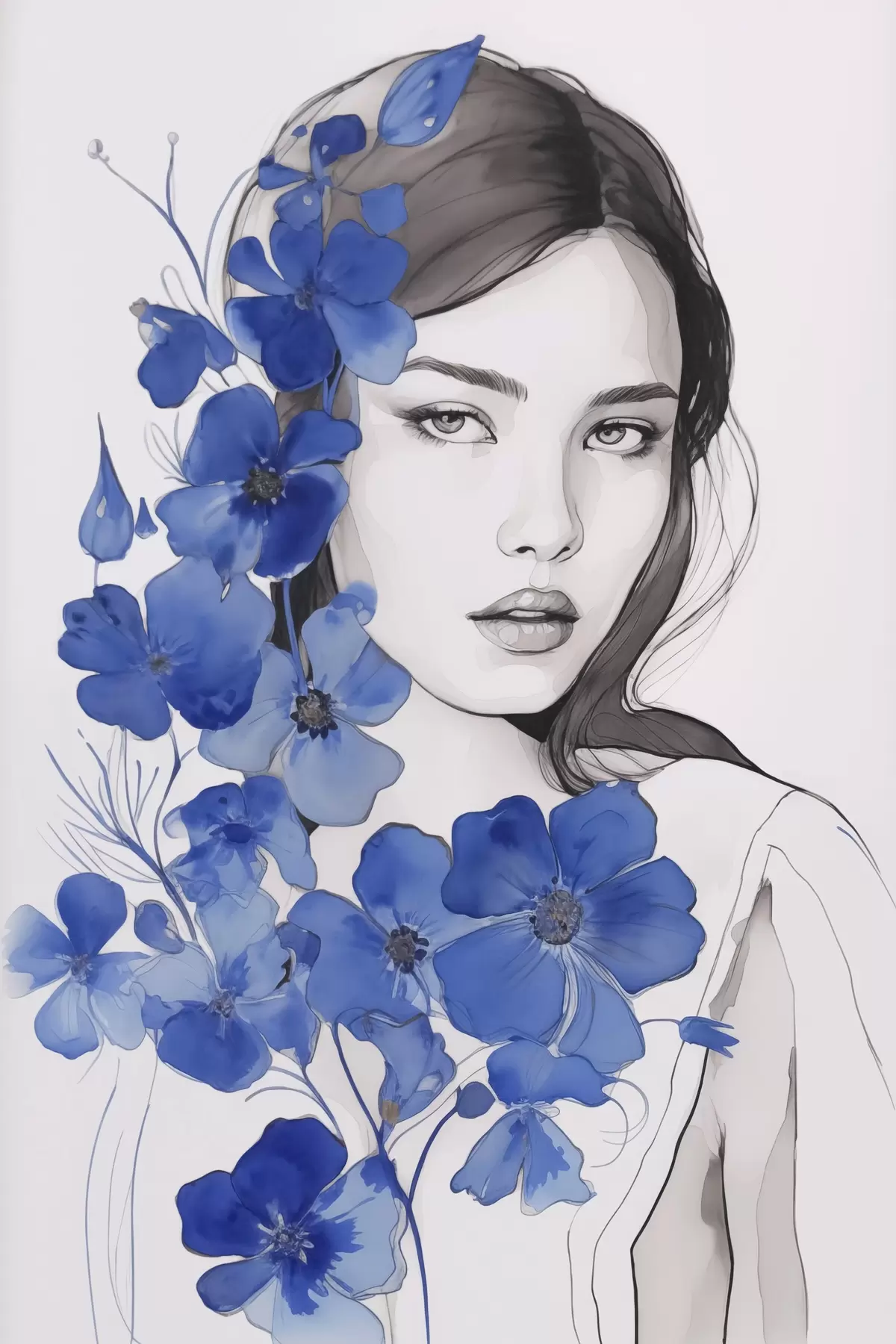 Wandbilder Mädchen und blaue Blumen Art. s45757