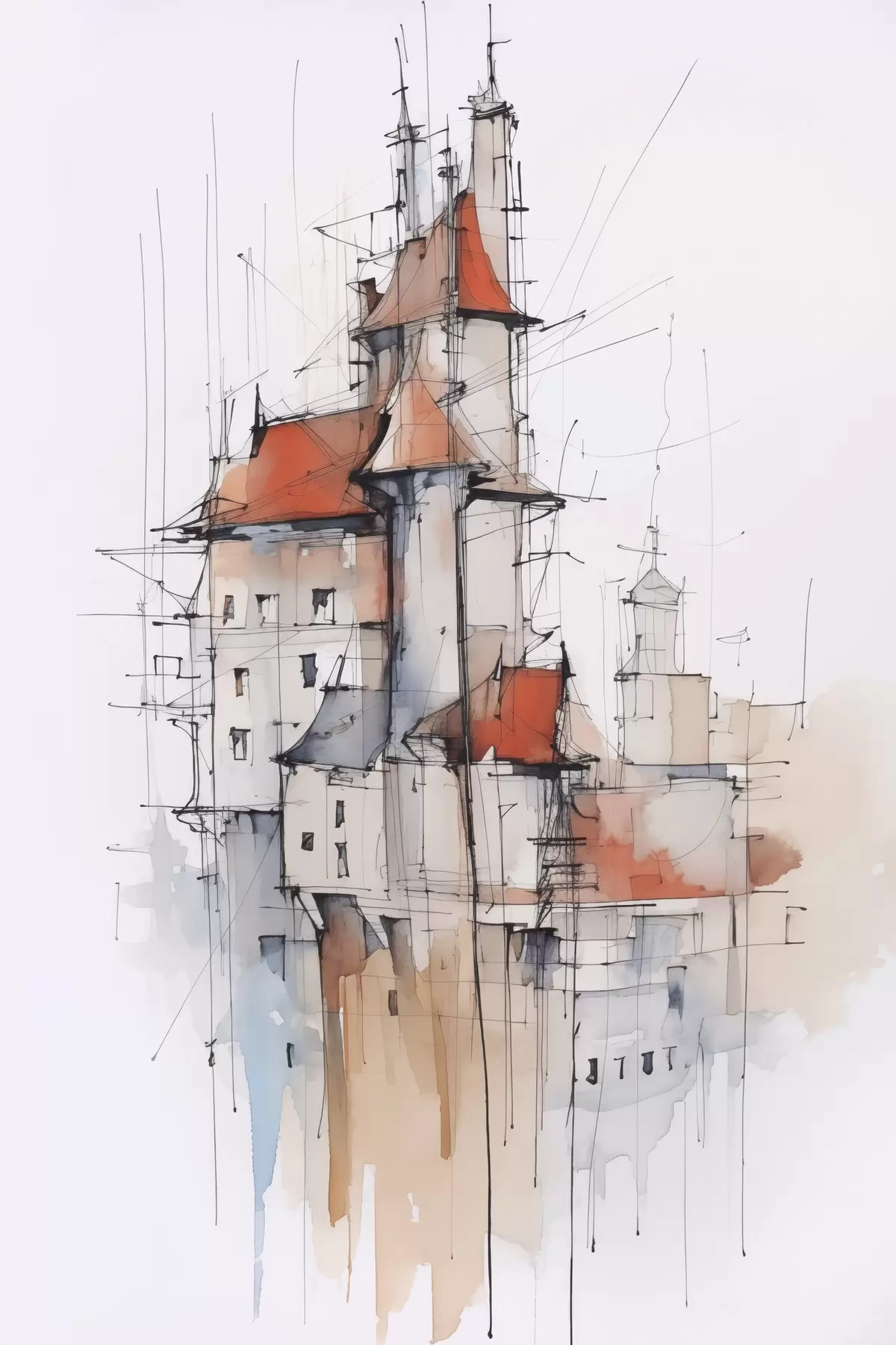 Wandbilder Häuser-Imitation, Skizze und Aquarell Art. s45764