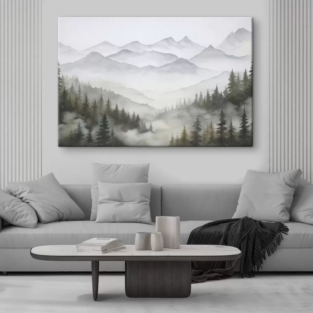 Wandbilder Wald im Nebel vor den Bergen Art. s45774