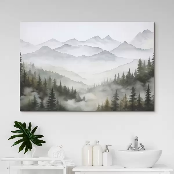 Wandbilder Wald im Nebel vor den Bergen Art. s45774