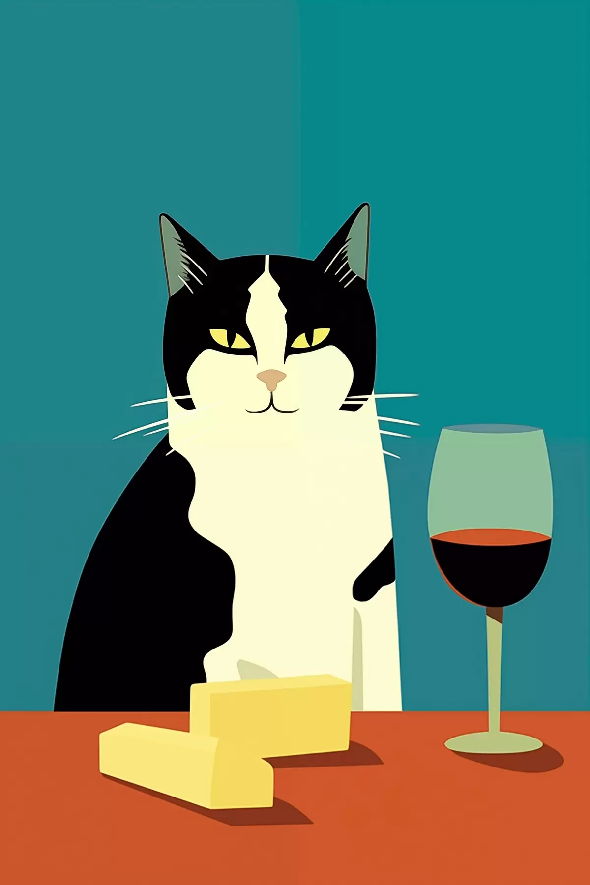 Wandbilder Katze mit Wein und Käse s45801
